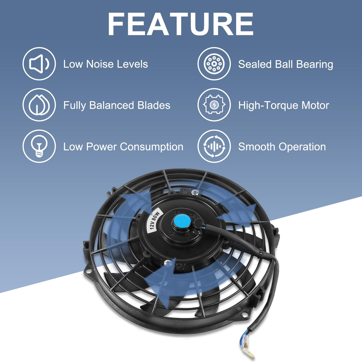 Product Desription: Cfm: 1730 Cfm Voltage: Dc 12V Color: Black Size : 9 Inch Compatibility: Universal Maximum Fan Rpm: 2,250 Rpm Blade Material: Plastic Amp Draw: 12.70 Amps Function: Cool The Entire Engine Bay, Including Radiator, A/C System, Intercooler, Oil System, And Transmission Application: For Any 12V Dc Vehicle , Best For Truck,Trailer, Pickup, Etc Note: Professional Installer Is Highly Recommended (No Instruction Included) Features: Increases Fuel Economy Improves Overall Performance Includes Mounting Brackets Can Be Mounted On Either Side Of The Radiator, As Pusher Or Puller,With No Loss Of Airflow Package: 1*9Inch Universal Electric Radiator Fans How To Choose A Electric Cooling Fans: A.Consider How The Body Style Of The Vehicle Affect Air Flow. B.The Core Dimensions Of The Radiator. C.Cfm (High Performance Or Mild) D.Amp Draw