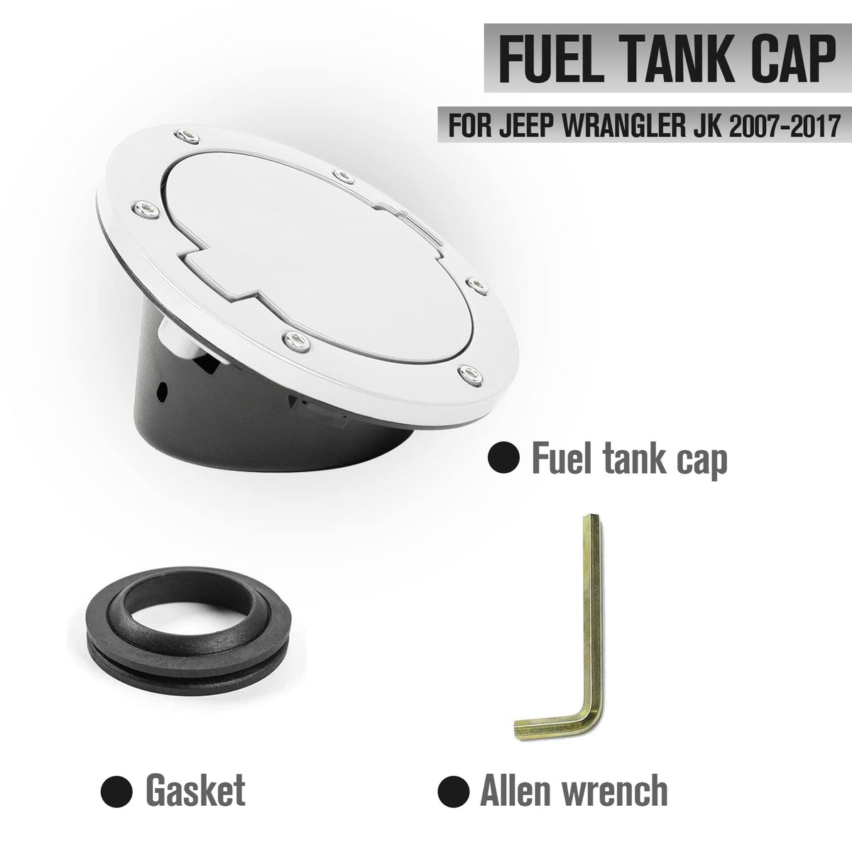 Jecar Jk Fuel Filler Cover Gas Cap Aluminum Alloy Gas Tank Door Exterior Accessories For Jeep Wrangler 2007-2018 Jk Jku, White