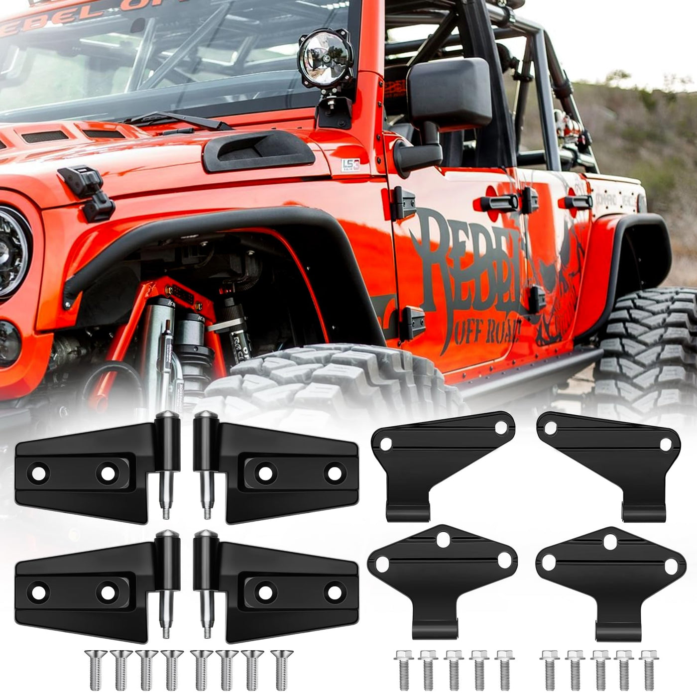 Jeep Wrangler JK 2 Door Hinge Assembly Kits Compatible with 2007-2018 Jeep Wrangler JK JKU Rubicon Unlimited Sahara Inside and O
