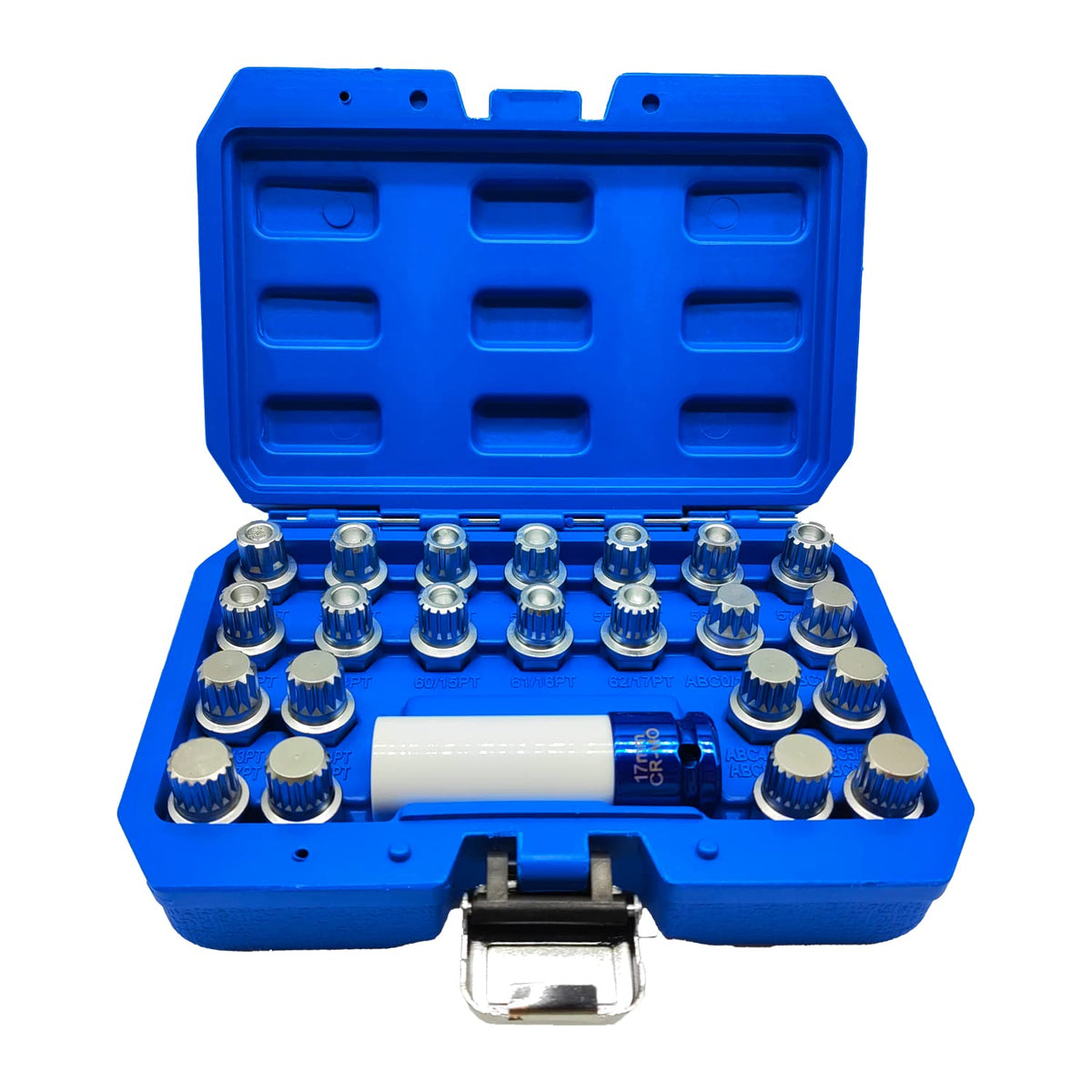 All-In-One Socket Tool Set The 23Pcs Wheel Lock Nut Key Set Is Compatible With A Wide Range Of Vag(Vw, Beetle, Eos, Jetta, Passat, Tiguan & Golf / G Ti'S) And Is Used To Remove And Install Wheel Anti-Theft Nuts. Save A Lot Of Money If You Buy It. But It Is Not Suitable For All Vag Models, Please Check Carefully Whether The Thread On The Product Picture Is Consistent With The Thread On Your Car Tire Before Purchasing. If Necessary, You Are Welcome To Purchase Our Other Set Of Lock Nut Socket Set Tools For Vag. 22 Different Sockets This Socket Set Includes 20 Different Sockets To Be Compatible With More Vag Models. The Models Of The Sockets Are: #51/6Pt, #52/7Pt, #53/8Pt, #54/9Pt, #55/10Pt, #56/11Pt, #57/12Pt, #58/13Pt, 59/14Pt, #60/15Pt, #61/16Pt, #62/17Pt, #Abc0/10Pt, #Abc1/11Pt, #Abc2/13Pt, #Abc3/14Pt, #Abc4/15Pt, #Abc5/16Pt, #Abc6/17Pt, #Abc7/19Pt, #Abc8/20Pt, #Abc9/21Pt. 1/2'' Drive Adapter This Wheel Anti-Theft Socket Removal Kit Includes A 1/2'' Drive Socket Adapter For Use With Sockets. High Quality Made Of High-Quality Materials, It Is Durable, Wear-Resistant, Rust-Proof, Anti-Corrosion And So On. Ensure Longer Service Life. And Neatly Arranged In A Blow-Molded Plastic Carrying Case, It'S Quick To Ship And Easy To Store. Service Jeuclel Aims To Provide The Most Professional Service So That You Can Rest Assured Of Our Quality. If You Have Any Questions, Please Email Us. We Will Provide You With The Best Solution.