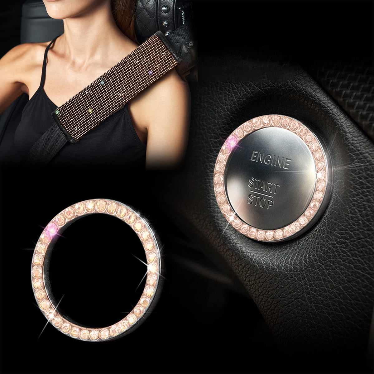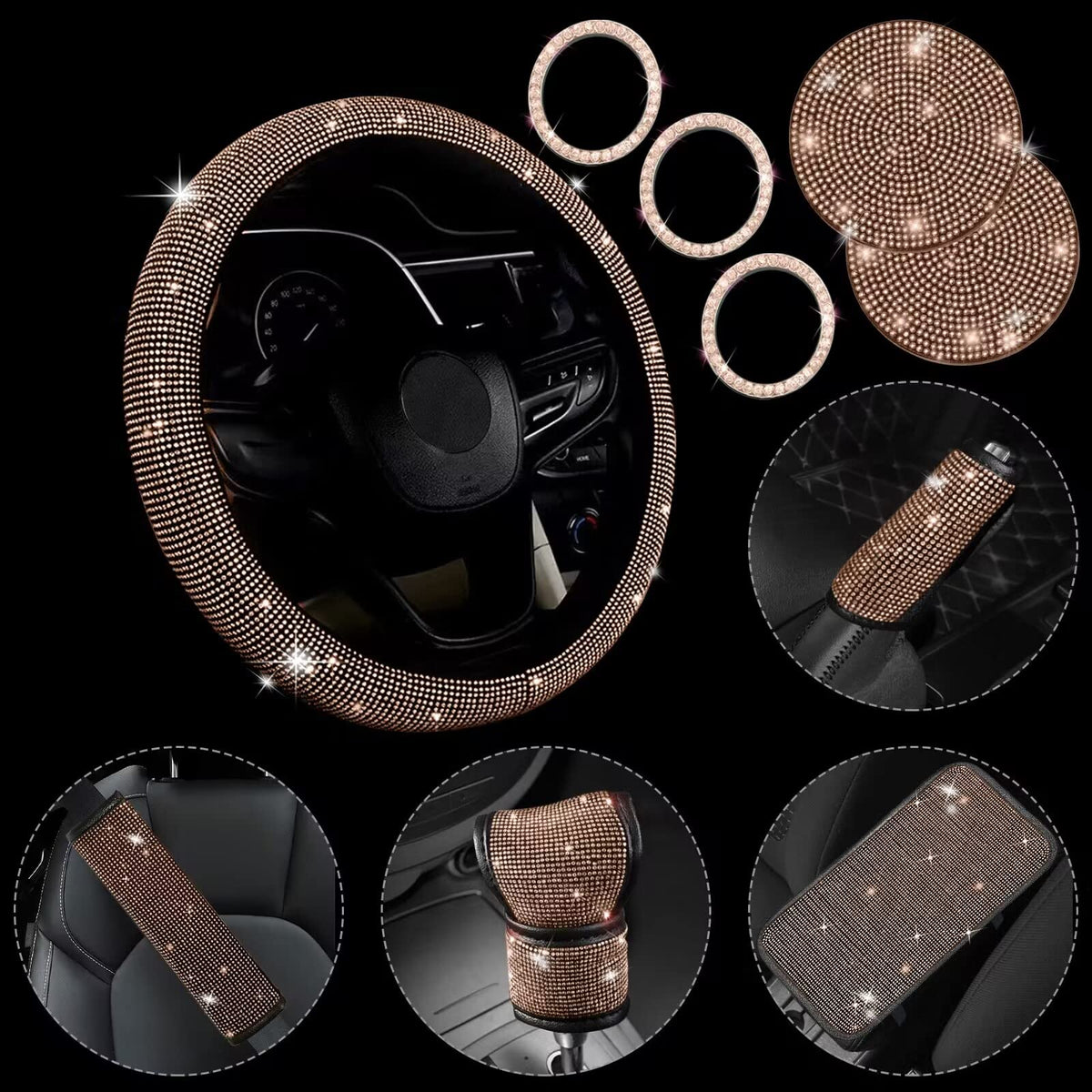 JINGSEN 11 Pcs Bling Car Accessories Set,Bling Car Accessories Set for Women,Steering Wheel Cover for Women Universal Fit 15 Inc