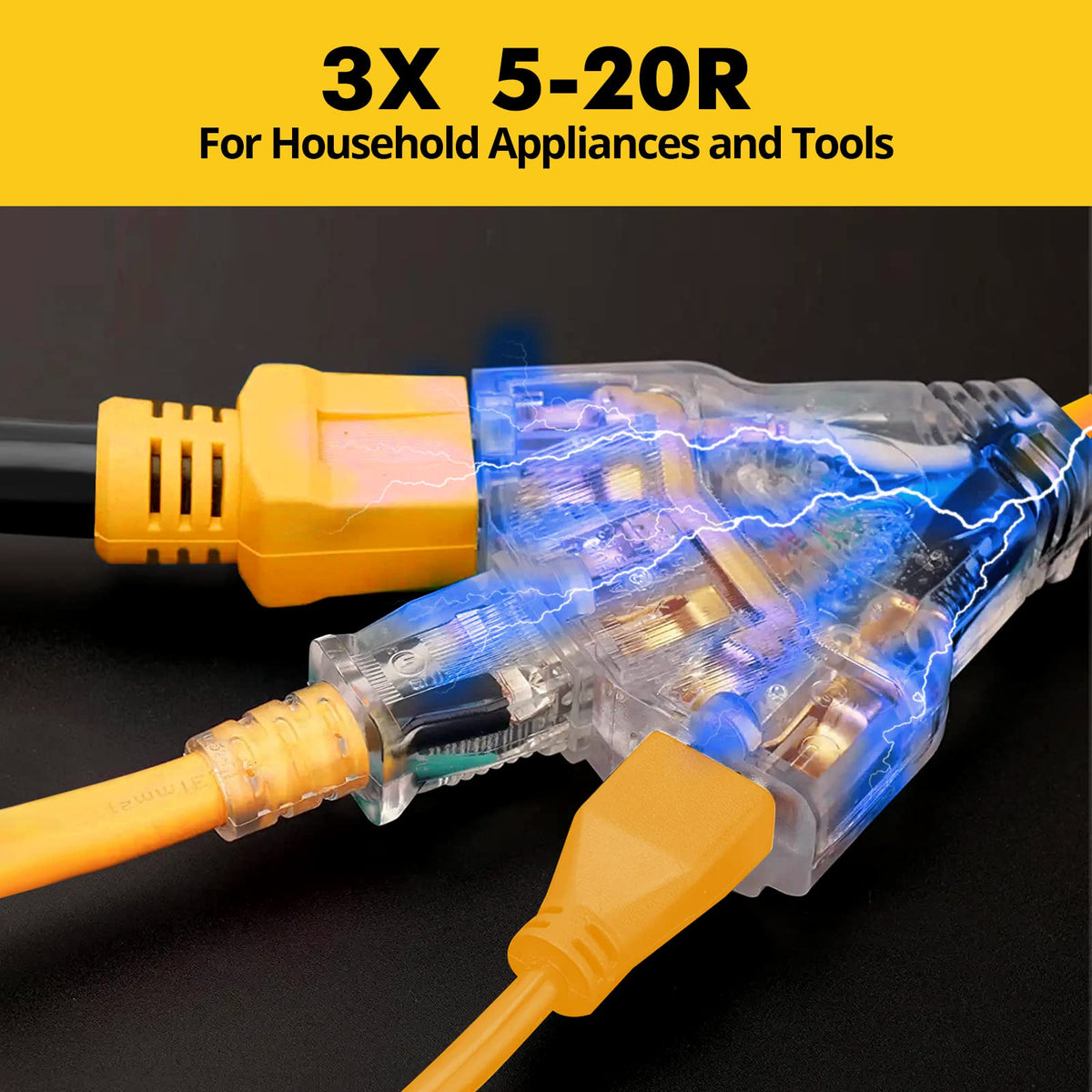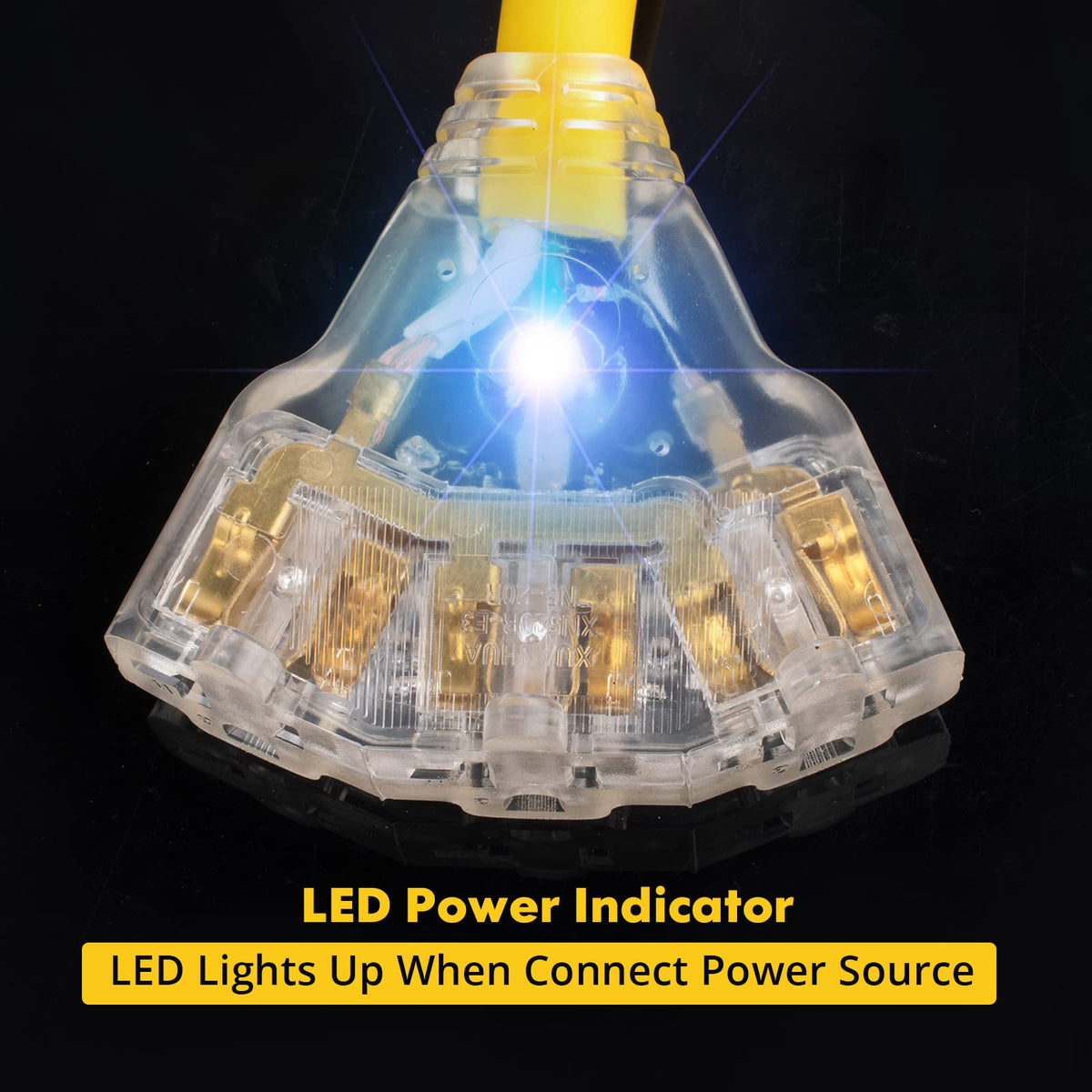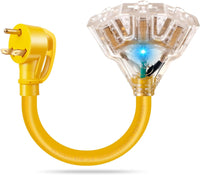 Jiuwfox 30 Amp To 110V 20 Amp Rv Distribution Adapter, Nema Tt-30P Male To 3X5-15R/20R Household Outlet Female With Led Power In