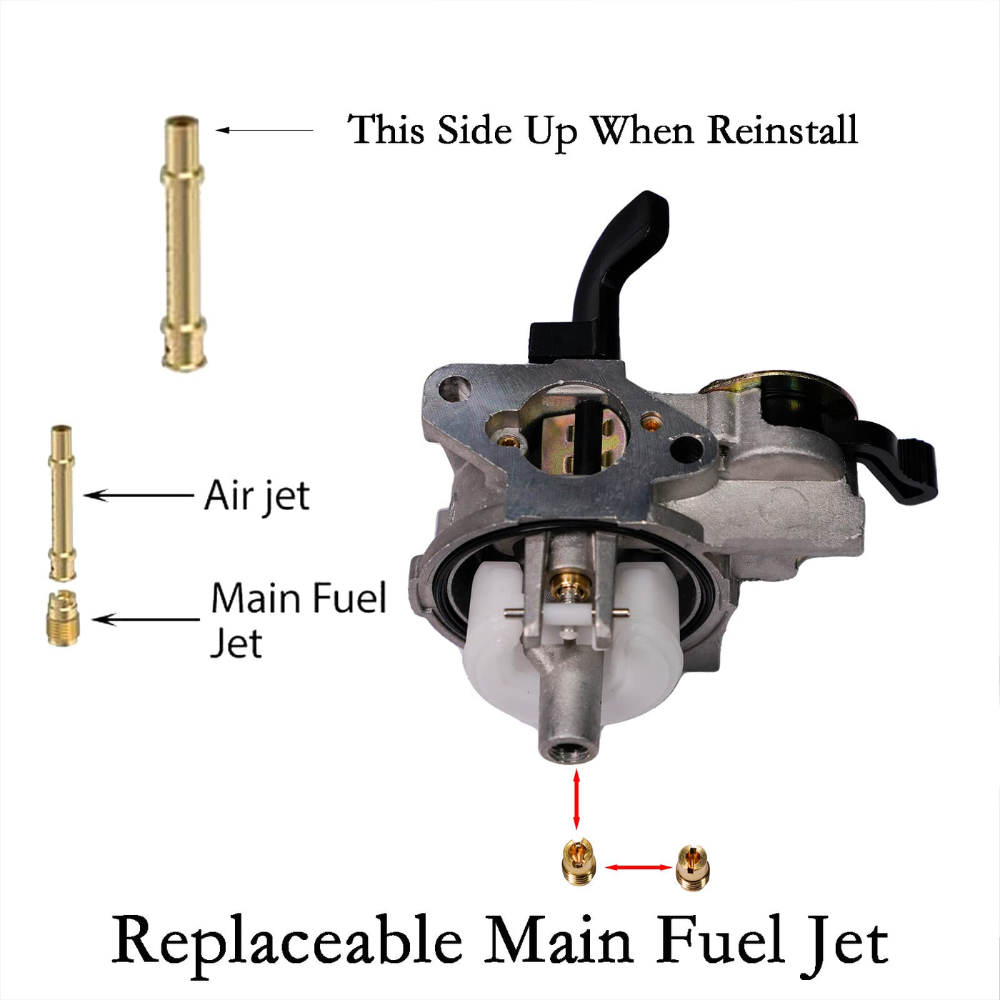Q: How does the replaceable main jet feature benefit my mini bike?A: The replaceable main jet allows you to adjust the carburetor for different elevations, ensuring optimal engine performance. This feature is crucial for maintaining the best condition and functionality of your mini bike, especially in varying environmental conditions.