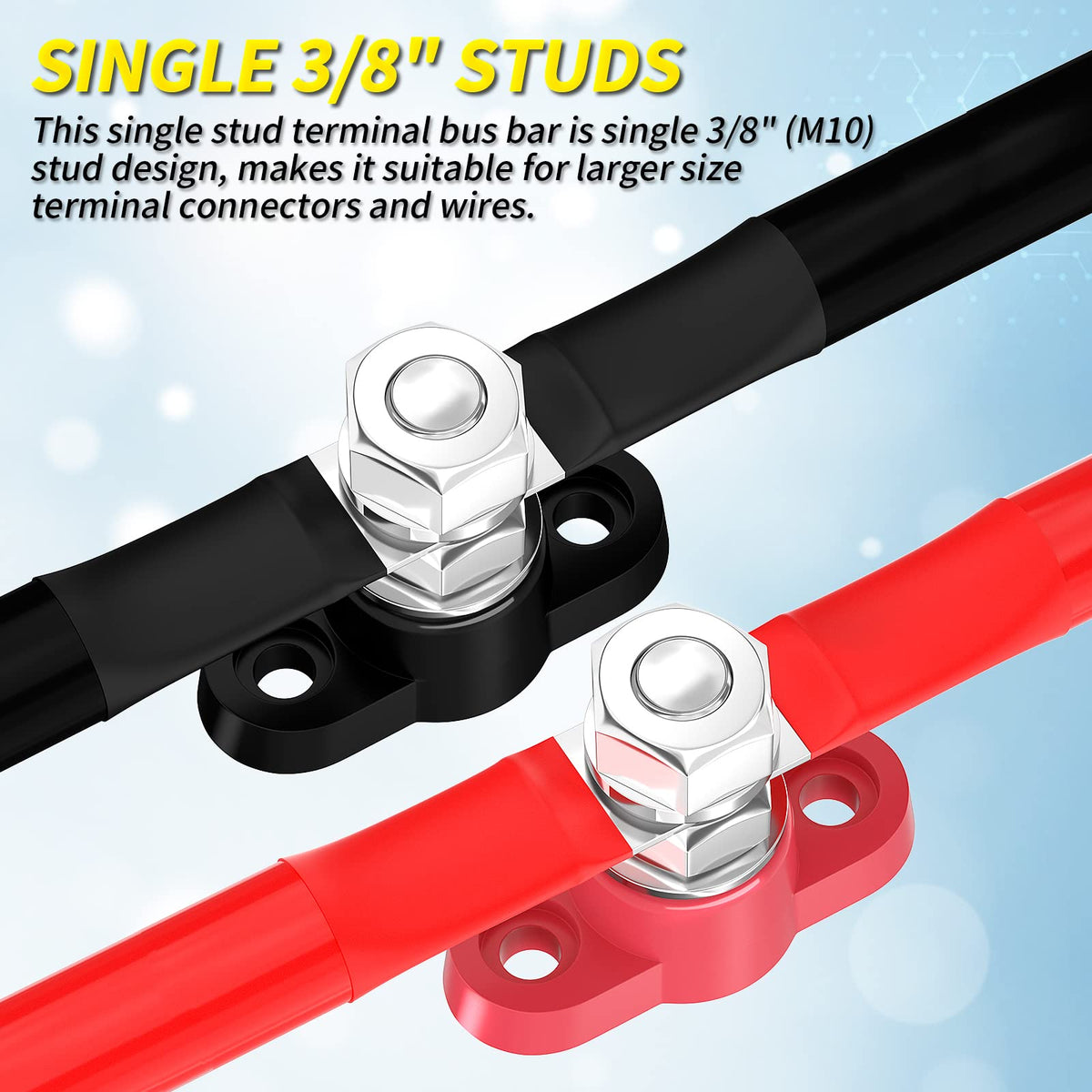 Joinfworld 3/8" 12V Battery Junction Block, M10 Insulated Power And Ground Battery Junction Post, Single Stud Power Distribution Block Terminal Post Bus Bar Positive&Negative