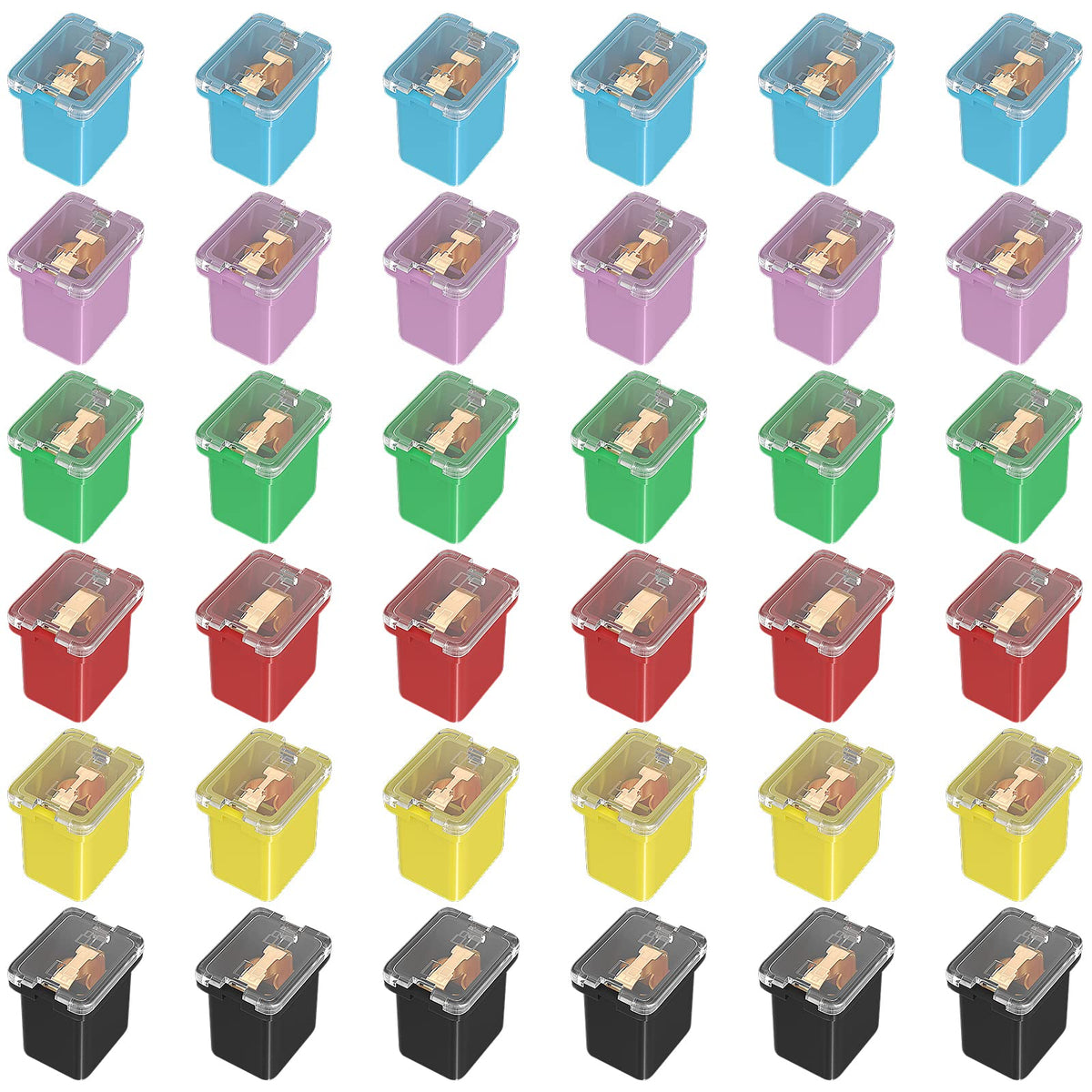 Package Includes: This JCASE Fuses Assortment Kit includes 36pcs low profile fuses, 6 different colors of fuses. The rating of each fuse is blue 20A*6pcs, pink 30A*6pcs, green 40A*6pcs, red 50A*6pcs, yellow 60A*6pcs, black 80A*6pcs. Premium Material: The Low Profile Fuse is made of high quality copper and plastic, good conductivity and flame retardant. Compared with others, it features safer and more durable. Easy to Identify: Each fuse can be easily identified by their color-coded plastic housings and the carved amp rating figures on the top. The visual and removable cover makes it convenient for you to check. Great Compatibility: Joinfworld JCASE Fuse can be widely used in cars, trucks, SUVs, homes, boats, RV, ATV, UTV, golf carts, and more electronic equipment. For any problems, please do not hesitate to write to us. Easy to Carry & Store: All the fuses are sorted and put in a package, super easy for you to carry and store.