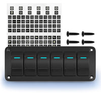 Joinfworld 6 Gang Rocker Switch Panel 12V Marine Boat Switch Panel Waterproof 12 Volt Blue Led Light Toggle Switch Panel On Off With Pre-Wired For Boat Automotive Car Truck Rv Utv