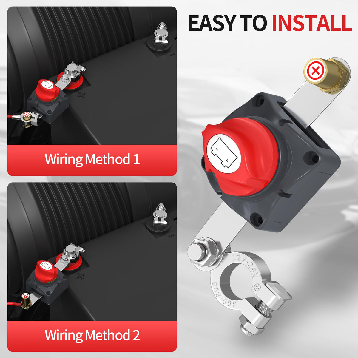 Joinfworld Battery Disconnect Switch 12V 48V Waterproof Marine Top Post Battery Disconnect Switch 12 Volt Battery Cut Off Switch