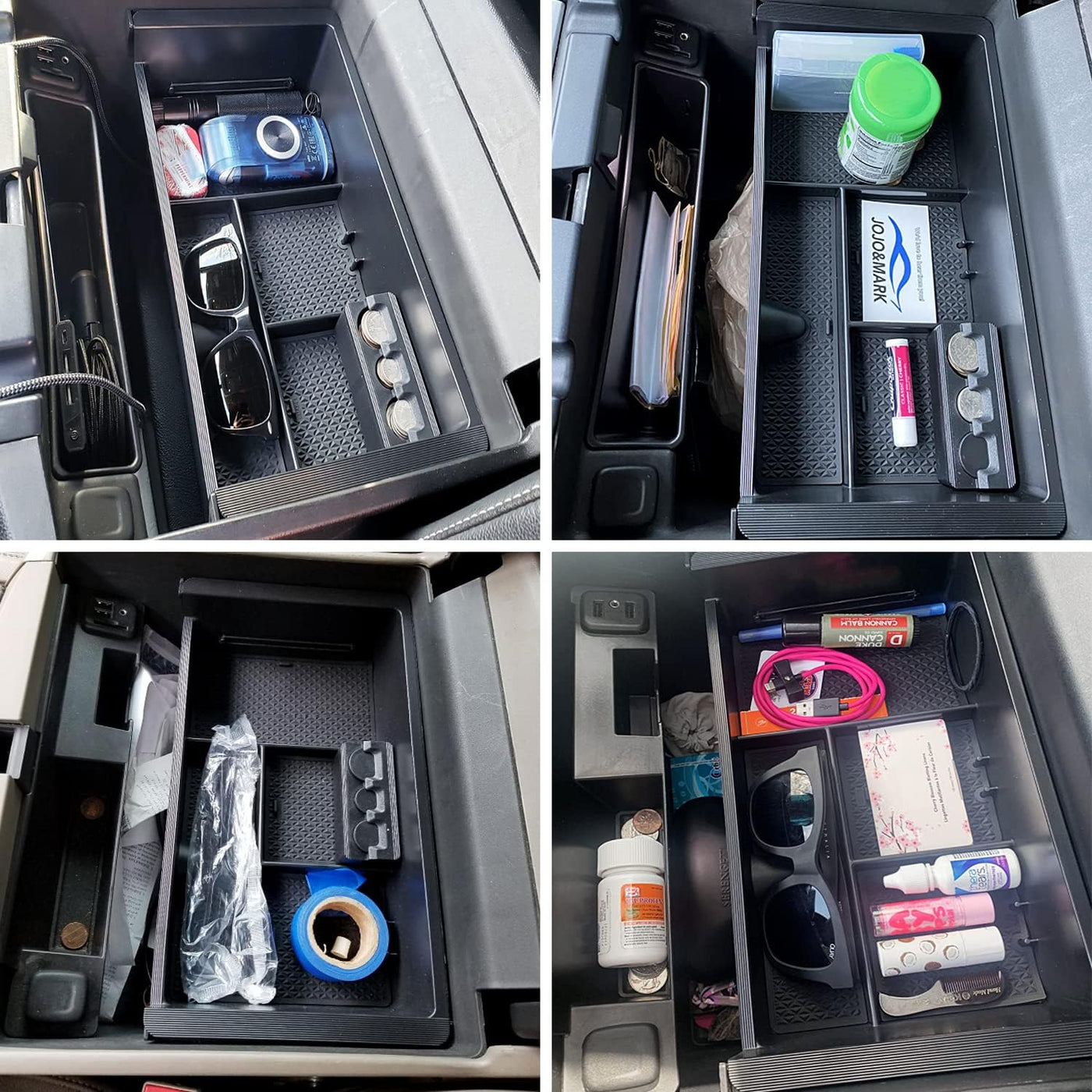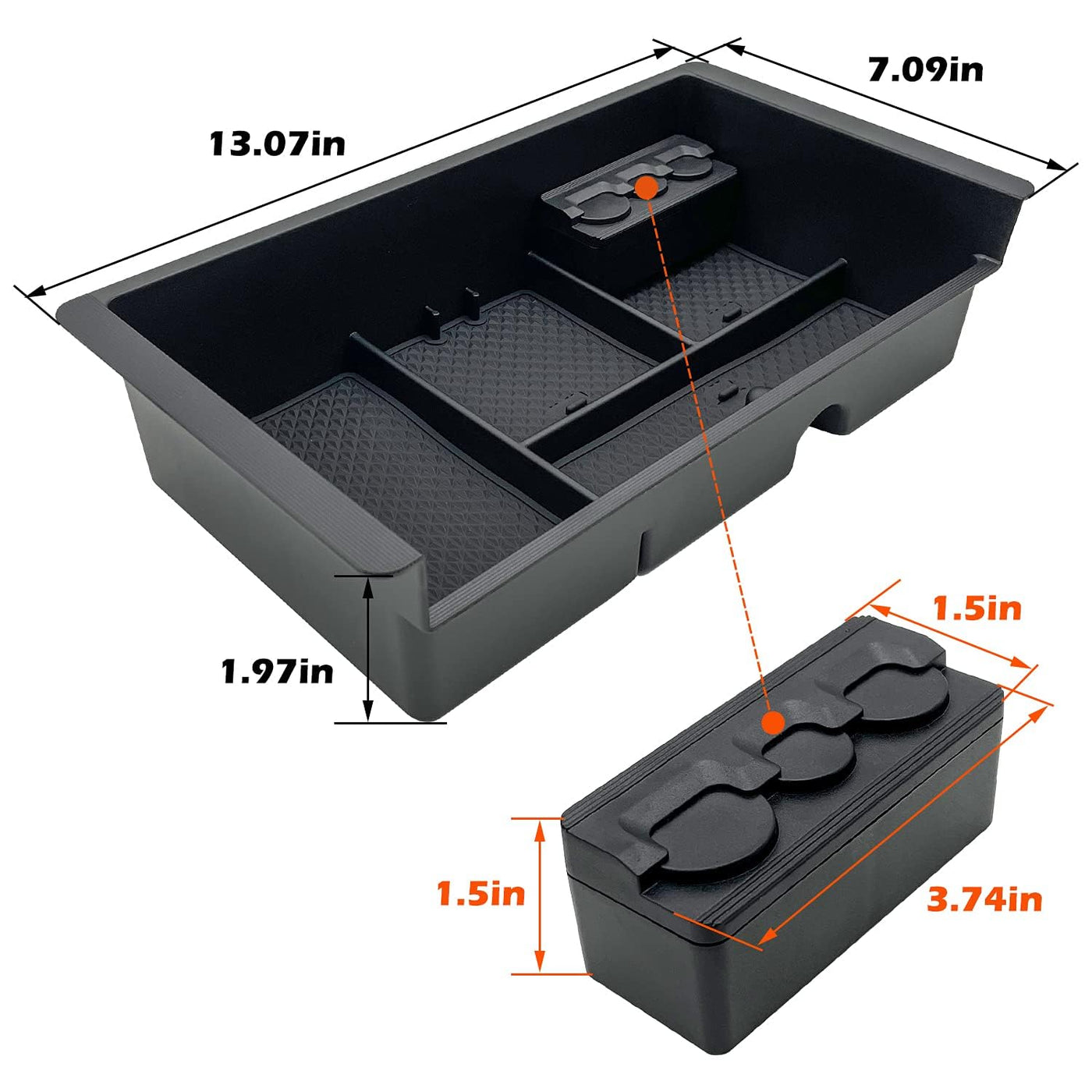 This insert tray divides your center console into upper and lower layers, let you can put more things, store items according to your need, keep things organized and quickly find what you need. Compatible with Chevy or GMC inner armrest likes a glove box as original factory look, including Compatible with Tahoe, Silverado, Suburban and GMC Sierra, Yukon. Your console will not only be completed and far away from sliding around, but also the room is enlarged for your placing stuff. Package also comes with 3 pcs of removable rubber mats to help you cleaning the console easily and quickly, if you are bored with the noise of collision of stuff and console organizer, the rubber mats must be your necessity.