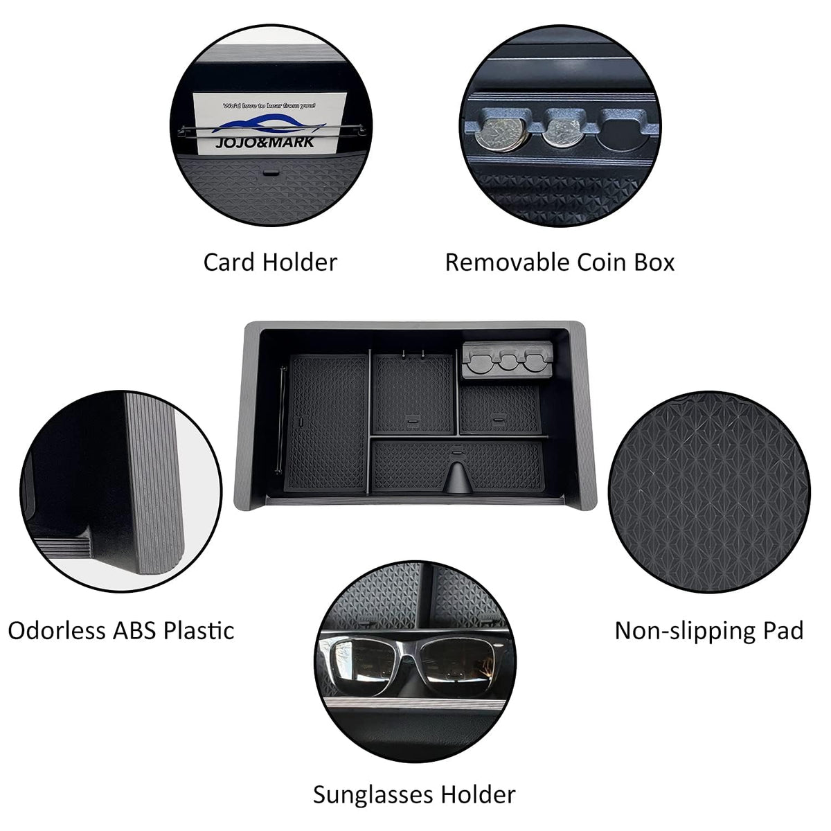 Q: What materials are used in the construction of the console organizer?A: The JOJOMARK Center Console Organizer is made from high-quality ABS plastic with a matte finish, making it waterproof and resistant to deformation under pressure. This ensures durability and longevity for everyday use.