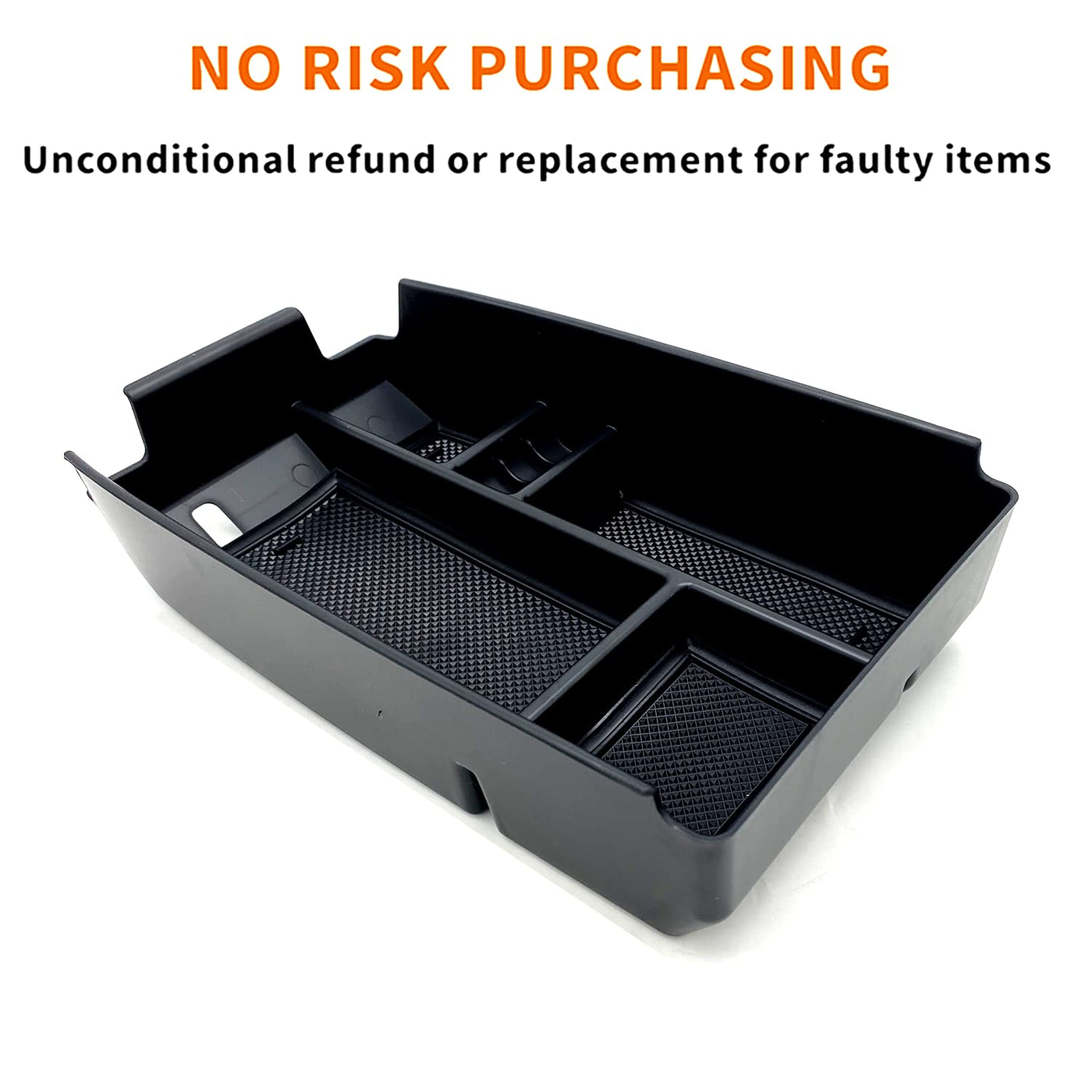 Q: How does the center console organizer help in keeping my items organized?A: The organizer divides the center console into upper and lower layers, allowing you to store items according to your needs and easily find what you're looking for.