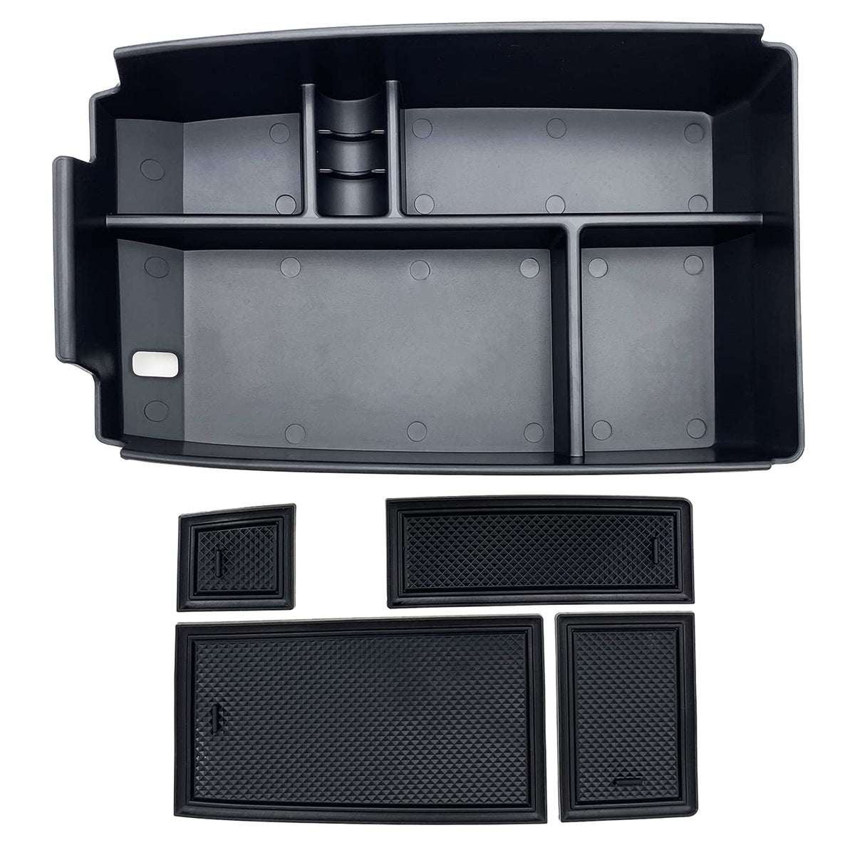 Q: Does the organizer prevent items from sliding around in the console?A: Yes, the organizer features a rubber tray liner that prevents items from sliding and rattling, providing a more stable storage solution.