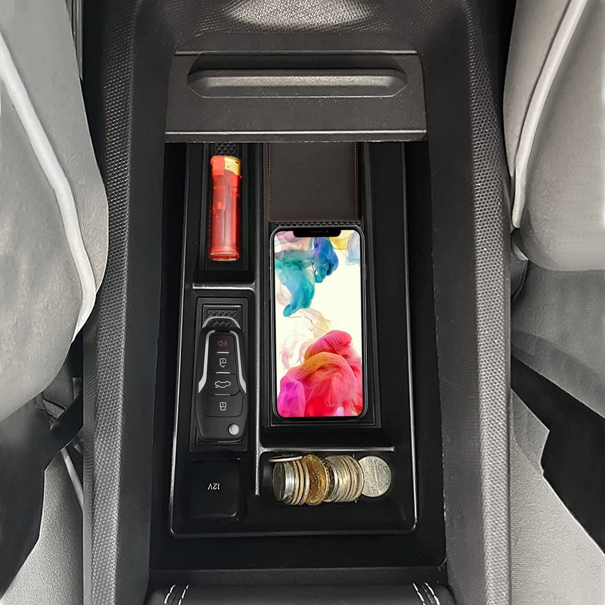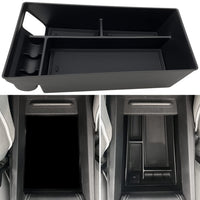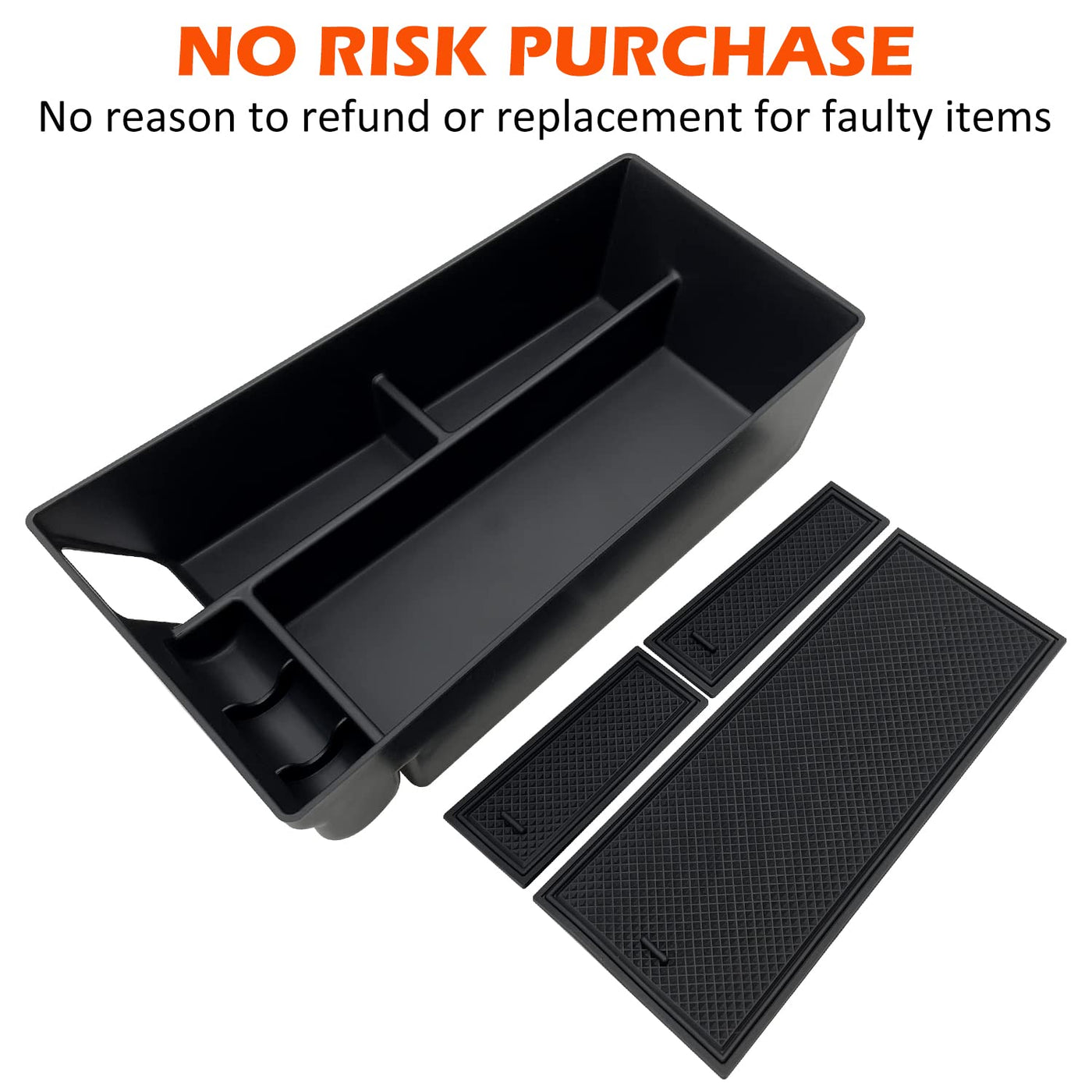 Why choose JOJOMARK center console tray organizer Compatible with Mustang Mach-E 2021 2022. 2023 This insert tray divides your center console into layers, let you can put more things, store items according to your need, keep things organized and quickly find what you need. Your console will not only be completed and far away from sliding around, but also the room is enlarged for your placing stuff. You cleaning the console easily and quickly, if you are bored with the noise of collision of stuff and console organizer, the rubber mats must be your necessity. Packing include : 1* Center Console Organizer Tray 1* Rubber Pad for Anti-slip Compatibility: Compatible with Mustang Mach-E 2021 2022 Center Console Organizer Insert ABS Black Materials Tray,