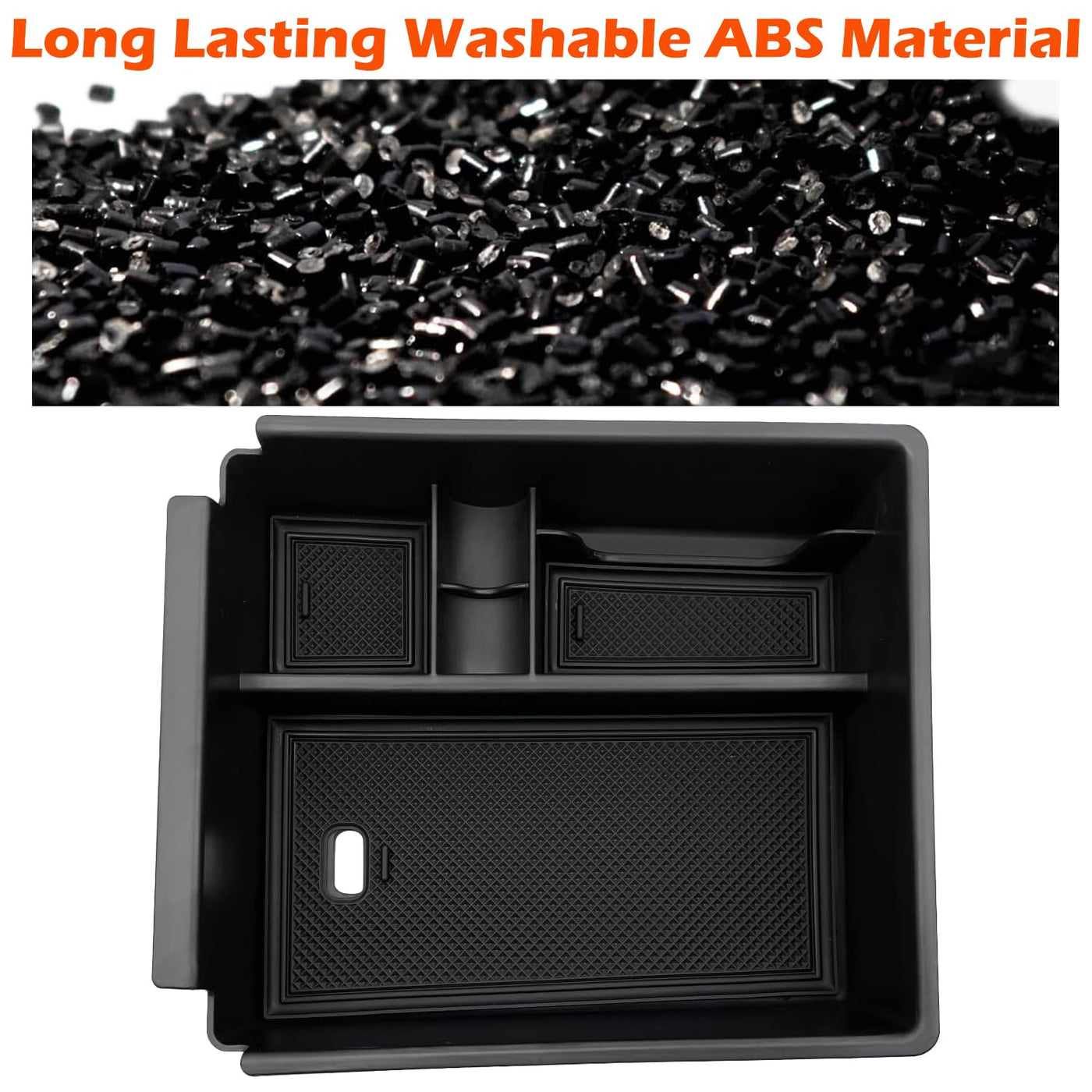 Q: What material is the console tray made of?A: The console tray is made from durable ABS plastic, which has a matte finish and is waterproof, ensuring long-lasting use.