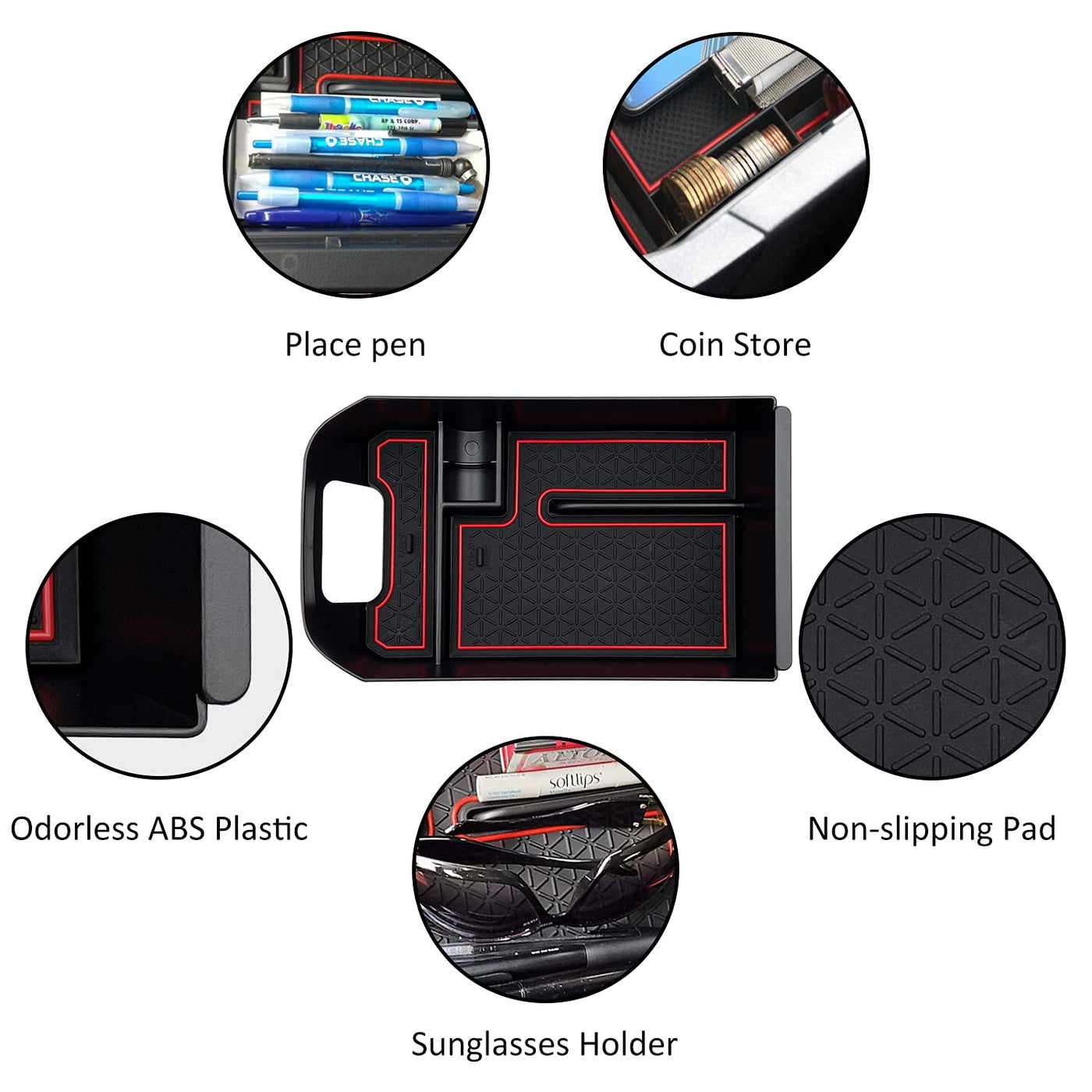 Why choose JOJOMARK center console tray organizer Compatible with Toyota RAV4. This insert tray divides your center console into upper and lower layers, let you can put more things, store items according to your need, keep things organized and quickly find what you need. Your console will not only be completed and far away from sliding around, but also the room is enlarged for your placing stuff. You cleaning the console easily and quickly, if you are bored with the noise of collision of stuff and console organizer, the rubber mats must be your necessity. >Pac