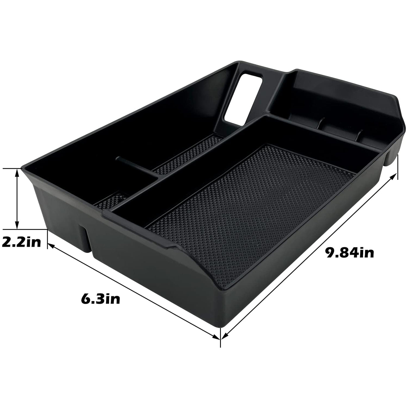 Q: How does the anti-slip feature of the tray work?A: The tray includes a rubber liner that prevents items from sliding and rattling during drives. This feature enhances organization and ensures that your belongings remain securely in place.