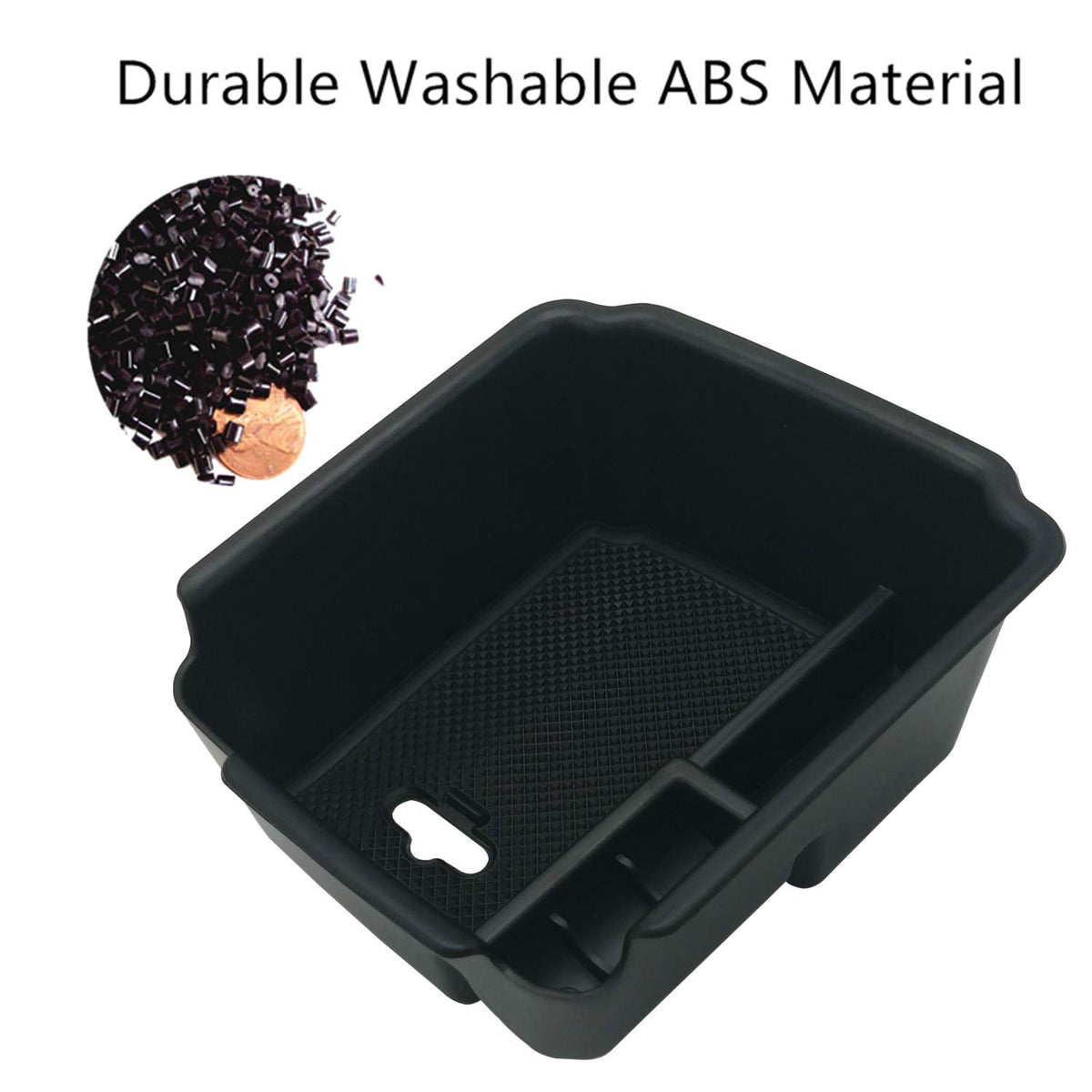 Q: What materials are used in the construction of this center console organizer?A: The center console organizer is made from durable ABS plastic, which features a matte finish that is waterproof and resistant to deformation under pressure.