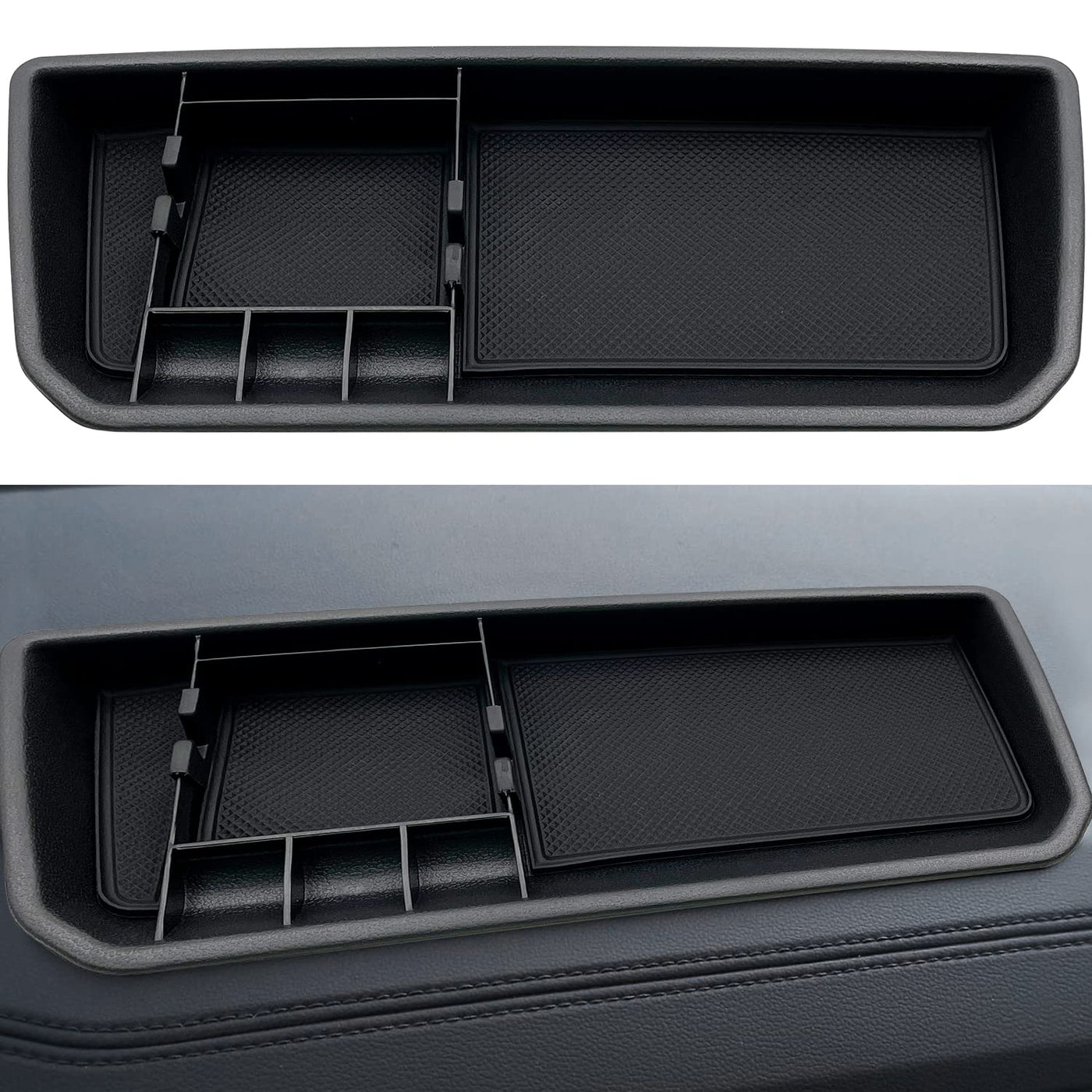 ?FITMENT?Compatible with VW Atlas and Cross Sport Accessories Center Console Organizer 2018 2019 2020 2021 2022 2023 | ?DURABLE?Made from ABS plastic with matte finish. Waterproof material. Not easy to deform under pressure. | ?NO-SLIP?Rubber tray liner prevents items from sliding and rattling in tray. | NO RATTLE?This tray fits the inside shape of the Dashboard tightly so it wont make rattle. coin case holds coins tightly,which is easy to put in and take out. | ?EASY INSTALLATION? Same size with original Dashboard , install directly, no need to modify. JUST few seconds,your center console will be more ORGANIZED.