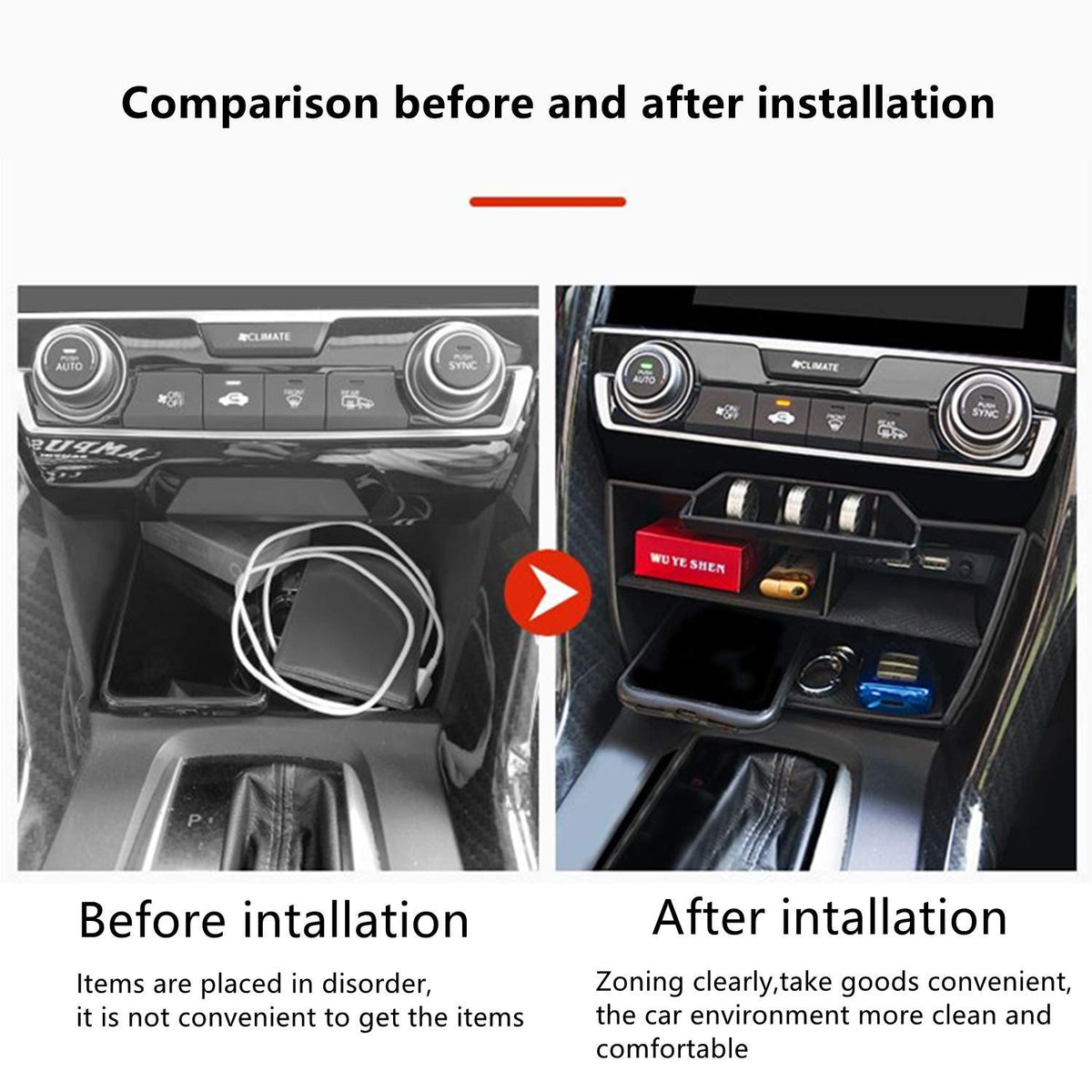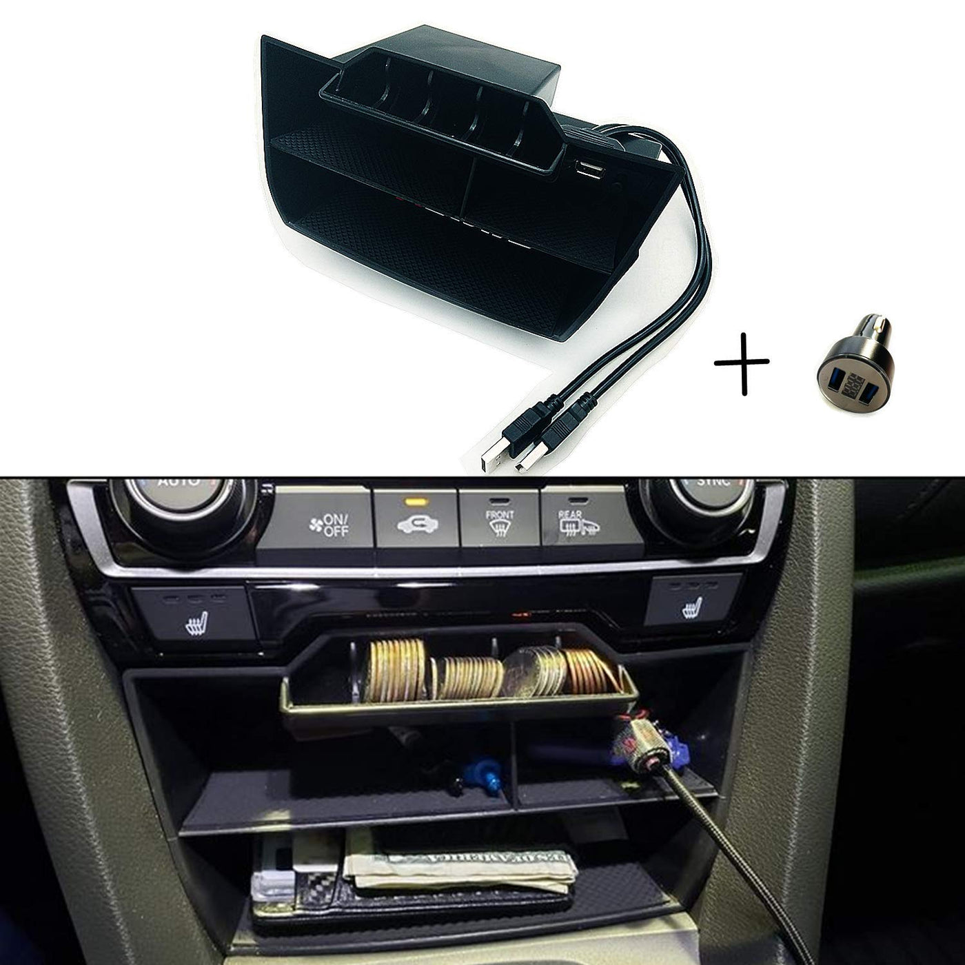 JOJOMARK Waterproof ABS Plastic Caddy for Honda Civic Sedan 10th Gen Central Console Box Coins Trays Organizer with USB Extension Cable - Fits 2016-2021