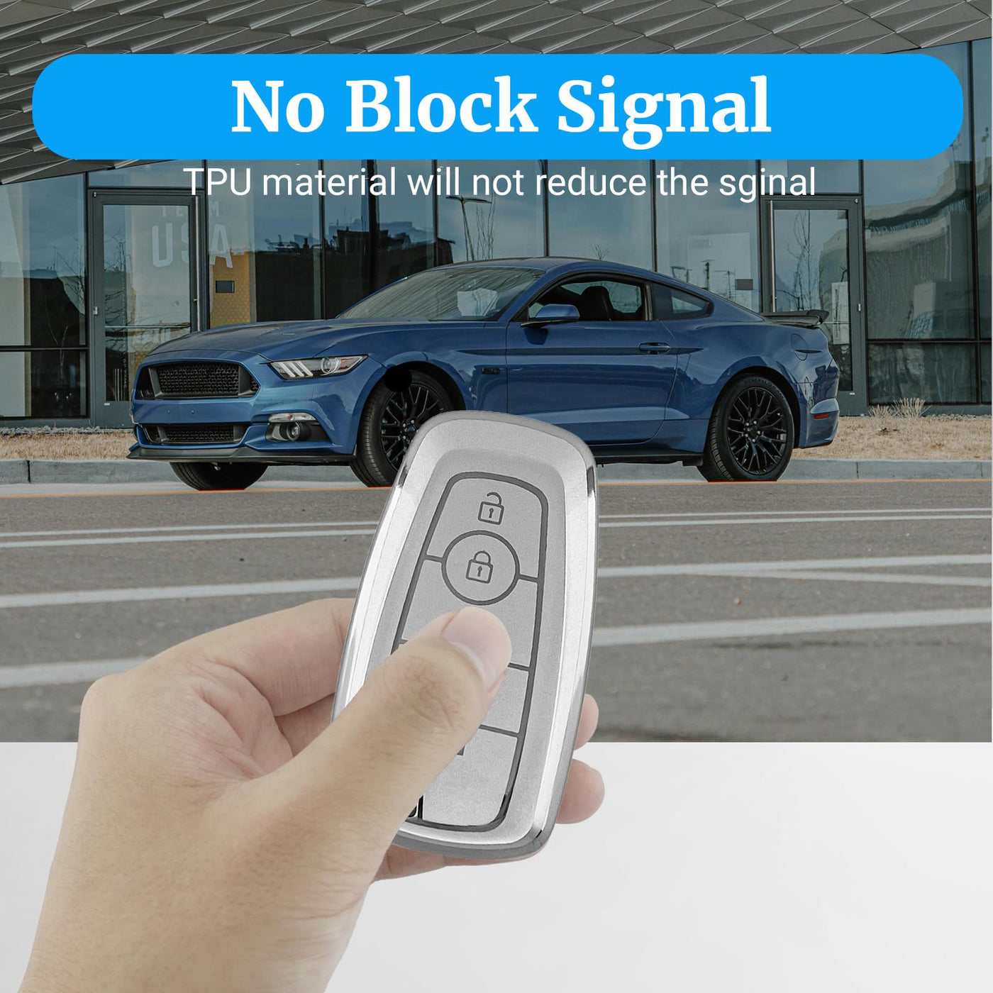 Joouheax for Ford Key Fob Cover with Keychain, Silver Full Protection Soft TPU Key Case for Explorer Expedition Fusion Escape Edge Bronco F150 Maverick Mustang 2018-2025