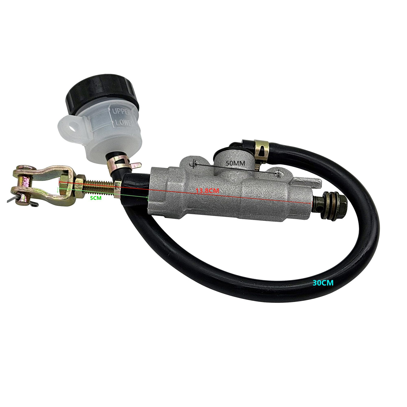 Q: What are the dimensions and specifications of the Rear Brake Master Cylinder?A: The install size of the Joygowe Rear Brake Master Cylinder is 50mm, and the total length of the oil pipe is 30cm. These specifications are important for compatibility with your motorcycle.