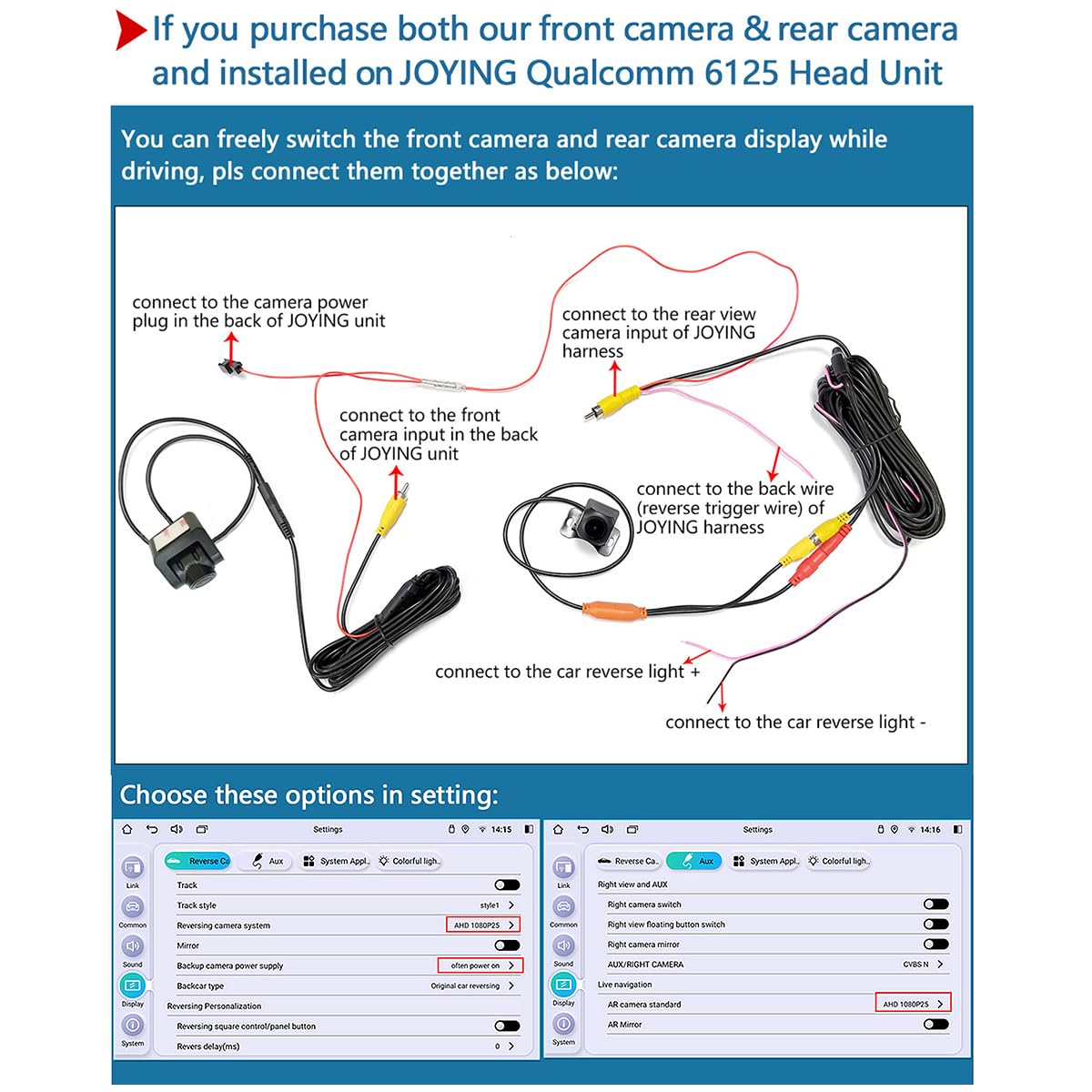 Joying Front Camera For Car And Backup Camera 1080P Dash Cam 125 Wide, 2 Million Pixel, Night Vision, Wdr, Ip68K Level Waterproo