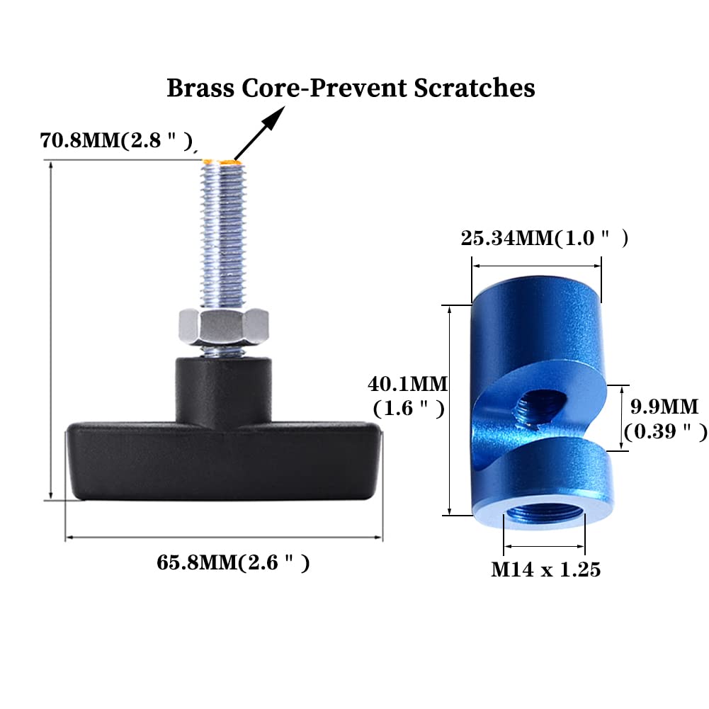 Q: What materials are used in the construction of the Lift Support Clamp?A: The Lift Support Clamp features a durable aluminum body that provides strength while being lightweight, along with brass core threads that prevent damage and scratching during use.