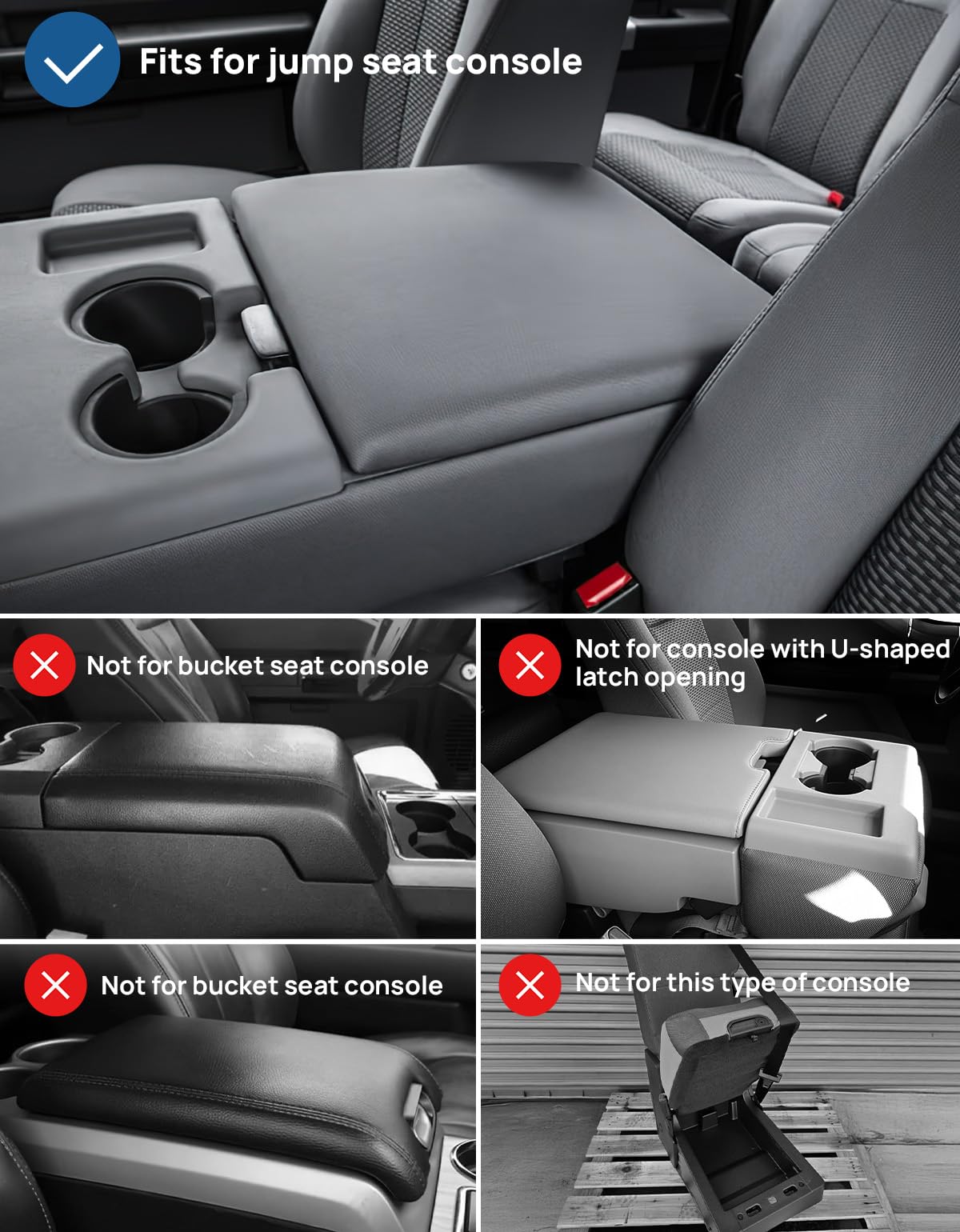 JOYTUTUS Center Console Cover Compatible with 2011-2016 Ford F250 F350 F450, 2011-2014 F150 with Jump Seat Console, Leather Armr