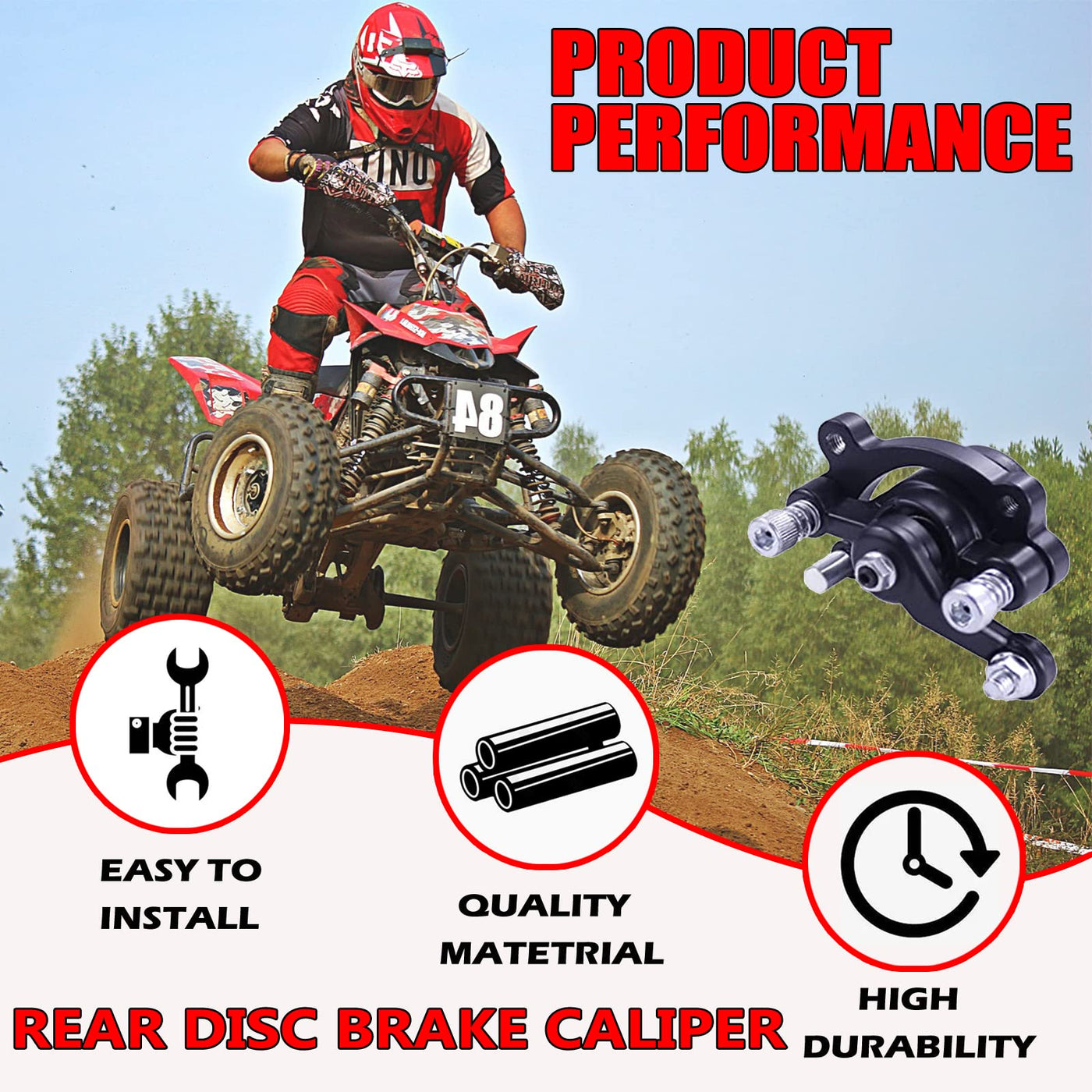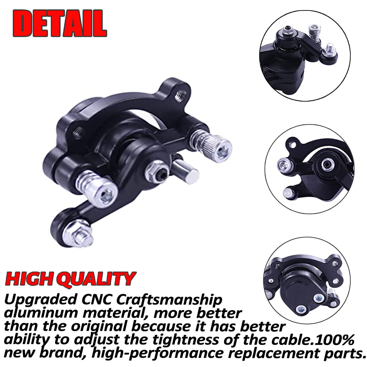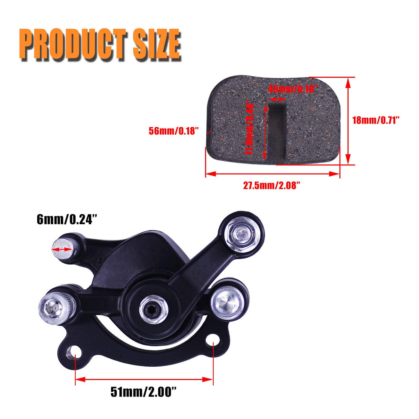 DEHE Disc Brake Caliper and Pad for MBX10 MBX11 Classic 80cc MM-B80 105cc MM-B105 1000w MM-E1000 CT100U CC100X Trail Mini Bike 47 49cc Mini ATV Gas Scooter Dirt Pocket BikeSpecification:Product Name:brake caliperCondition:NewColor:Black & RedMaterial:MetalMounting Hole Distance: 51mm / 2.01 inchesFitment:33cc 43cc 47cc 49cc Mini Moto ATV Gas Scooter Kids Dirt Pocket BikeMBX10 MBX11Mega Moto Classic 80cc MM-B80 105cc MM-B105 1000w MM-E1000CT100U CC100X TrailRT100 pocket bikeCAG pocket bikeMAT1,MAT2 mini pocket bikeMX3 pocket bike1G,2G pocket bikeand other 2 stroke pocket bike mini bikePackage Contents:1 x Brake Caliper2 x brake pads1 x wrench3 x TieNote:-We provide clear pictures, measurements where possible. Please check as much as possible to make sure the item is the one that you need.-All dimensions are measured by hand, Please allow 0.5-1 inch difference due to manual measurement.(1inch=2.55cm).
