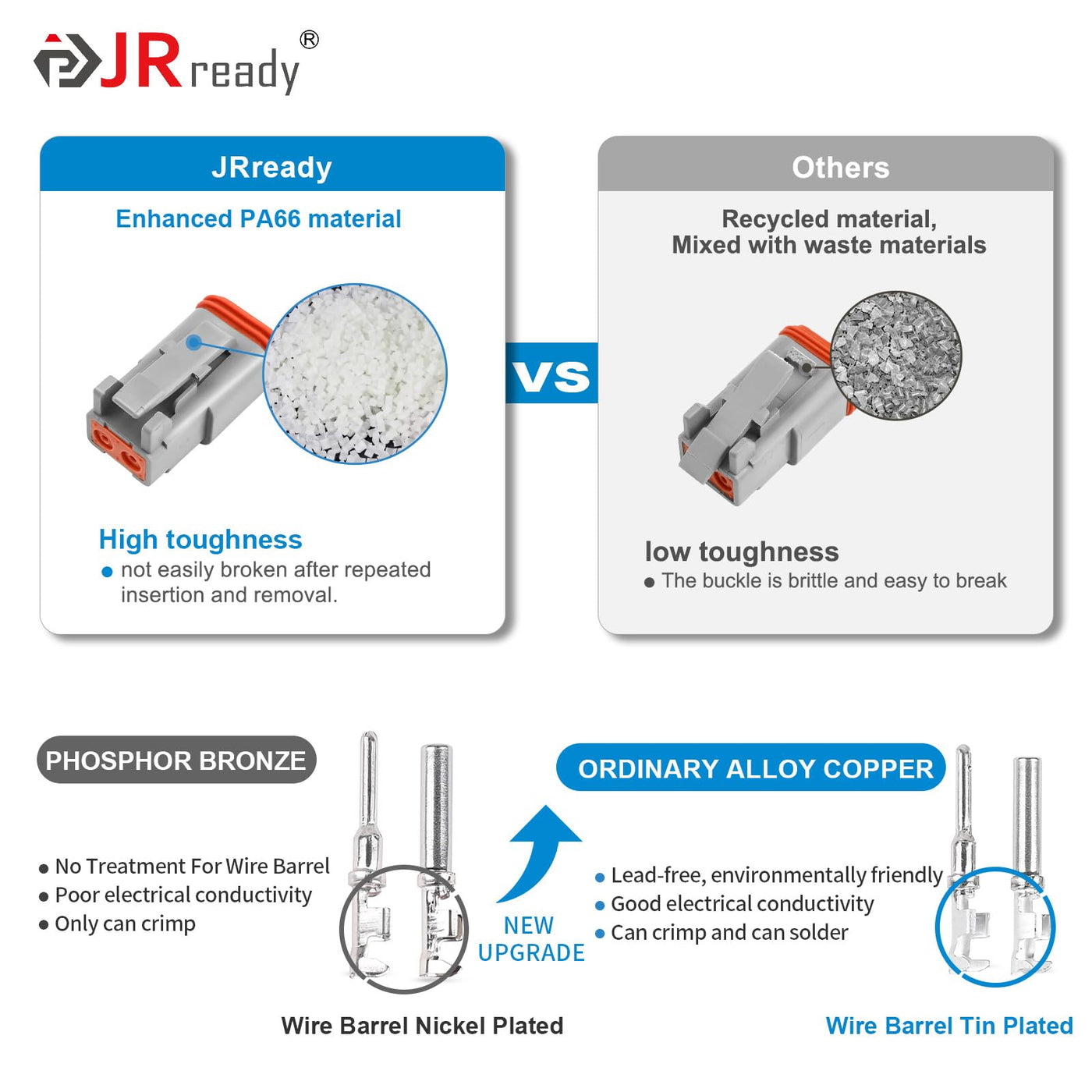 Q: Can I use the JRready connectors for marine applications?A: Absolutely! The JRready Deutsch connectors are ideal for marine applications due to their corrosion-resistant properties and waterproof design. They can be used effectively in boats and other watercraft to ensure reliable connections.