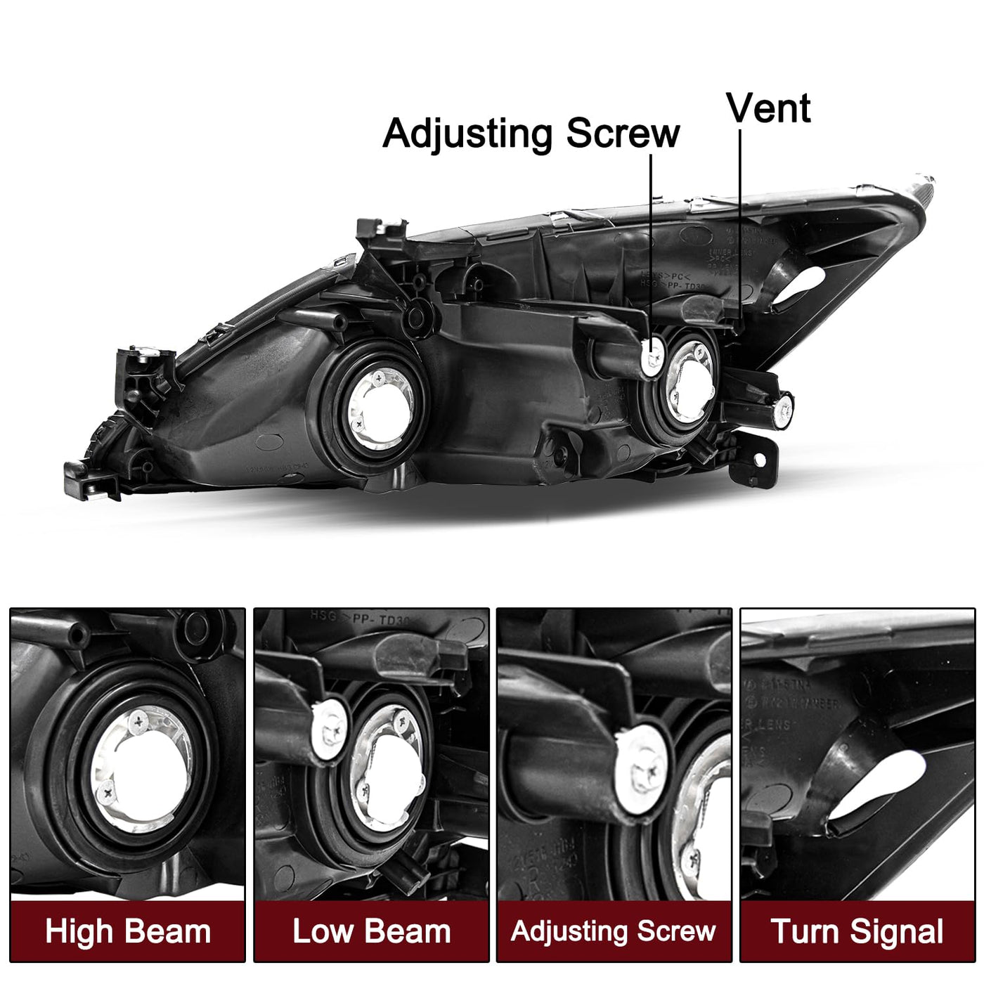 Fitment: For 2003 2004 2005 2006 2007 Honda Accord.&Nbsp;Product Information: Color: Black Housing / Clear Reflector&Nbsp; Oem Part Number: 33101-Sda-A01, 33151-Sda-A01 Partslink Number: Ho2503120, Ho2502120 Warranty: 3 Month Package Included: ?1 Pair Of Headlights (Driver And Passenger Side). ?Notes: Bulbs Are Included. Thanks For Your Understanding! Compatibles Models: ?For 03 04 05 06 07 Honda Accord Halogen Model [Only Compatible On Models W/ Factory Halogen&Nbsp;Headlights] Bulbs Type: High Beam: 9005 Low Beam: H11 Product Features: ?Brand-New And High-Quality Headlight Assembly Replacement For 2003-2007Honda Accord Halogen Model. ?The Housing Of Headlight Is Sealed And The Assembly Is Waterproof, Shock Resistant And Heatproof. ?Jsboyat Headlight Allows You To See The Road Clearly When Driving During Nighttime. ?You Can Drive Safely In Bad Weather, Such As A Rainy Day Or A Foggy Day Due To The Good Performance. ?Replace With Jsboyat Headlight Assembly And It Will Makes Your Vehicle Look Like New! Installation Procedure: Professional Installation Is Highly Recommended A. Consult A Vehicle Manual To Find Out Which Component Needs To Be Removed To Get Access To The Headlight Assembly. B. Undo The Screws, Clips, Or Retainer Springs That Hold The Headlight In Place. C. Disconnect The Wiring From The Assembly. After The Wiring Is Removed, You Can Now Detach The Headlight From The Vehicle To Replace It With A New One. D. Fix The New Headlight Into Place And Make Sure That The Screws, Clips, Or Retainer Springs Used Are Sealed. E. Reconnect The Wiring That Was Unplugged From The Assembly. F. Test The New Assembly.
