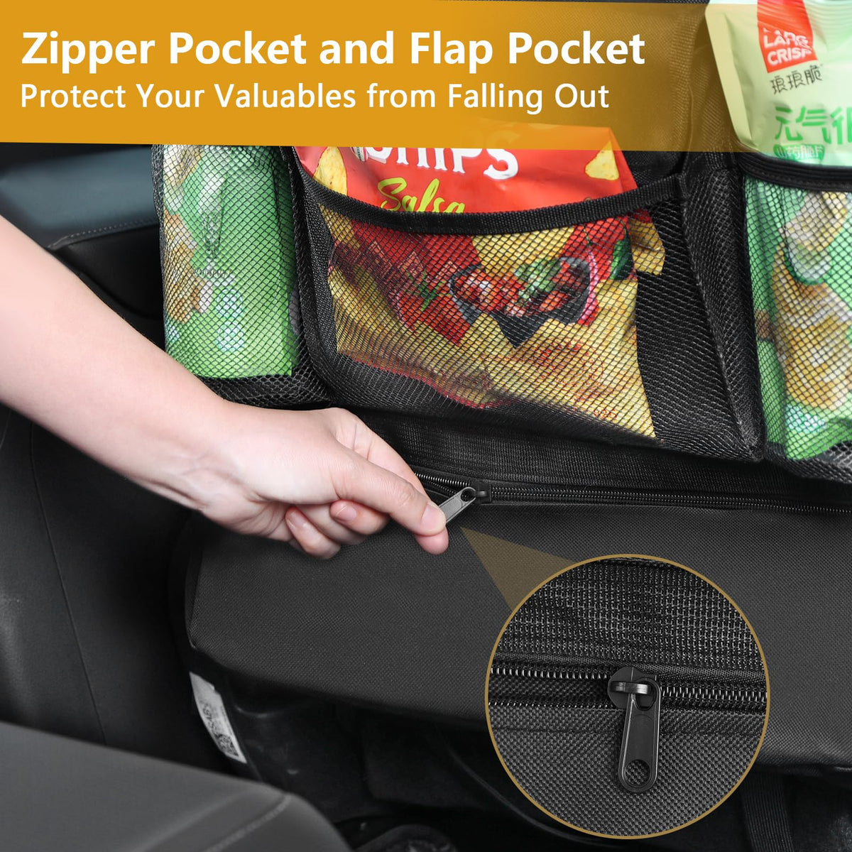 We all know that a disorganized car will put a lot of pressure on many people and make things fly around. Here Comes Surprise! This multi-pocket car back seat organizer is a good choice to keep you safe while driving, while keeping kids entertained in the back. More Storage to Keep Your Car Clean And Tidy Multi-storage and large back seat organizers and storage is enough to cover the backrests of the front seats well. The mesh bags on both sides can store beverages, power banks, etc.; zipper bottom bag can store books,tissue,magazines, snacks, etc.; 2 plastic hooks for hanging umbrellas and tissue boxes and other items Touch Screen Tablet Computer Stand This car organizer backseat is equipped with an ultra-transparent tablet stand, suitable for Android and IOS tablets. Your children can watch their favorite shows or play their favorite games on the go. Easy Clean This multifunctional car seat organizer is easy to clean those dirty shoe prints on them, just need a wet cloth to clean it up. Fast and convenient. Keeps your car clean and tidy also protects the back of your seat from dirty little shoes The back of seat organizer is made of waterproof, machine washable fabric for easy care. Easy to install The car seat protector for back seat has adjustable buckles and strong straps that make the rear seat organizer suitable for almost all car seats. It can be easily installed in just 5 minutes. The installation of back of car seat organizer is convenient and easy.
