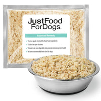 Q: How should I serve JustFoodForDogs Frozen Fresh Dog Food to my pet?A: JustFoodForDogs Frozen Fresh Dog Food is ready-to-serve; simply thaw it in the refrigerator before feeding. Ensure to serve the appropriate portion size based on your dog's weight and dietary needs for the best results.