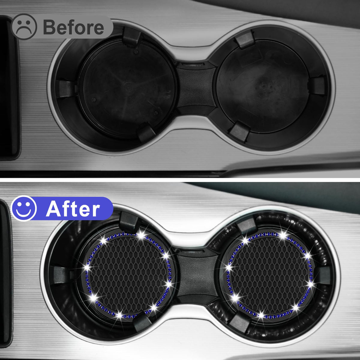 JUSTTOP 2 Pack Universal Auto Anti Slip Cup Holder Insert Coaster, Car Cup Holder Coaster, Bling Crystal Rhinestone Car Interior