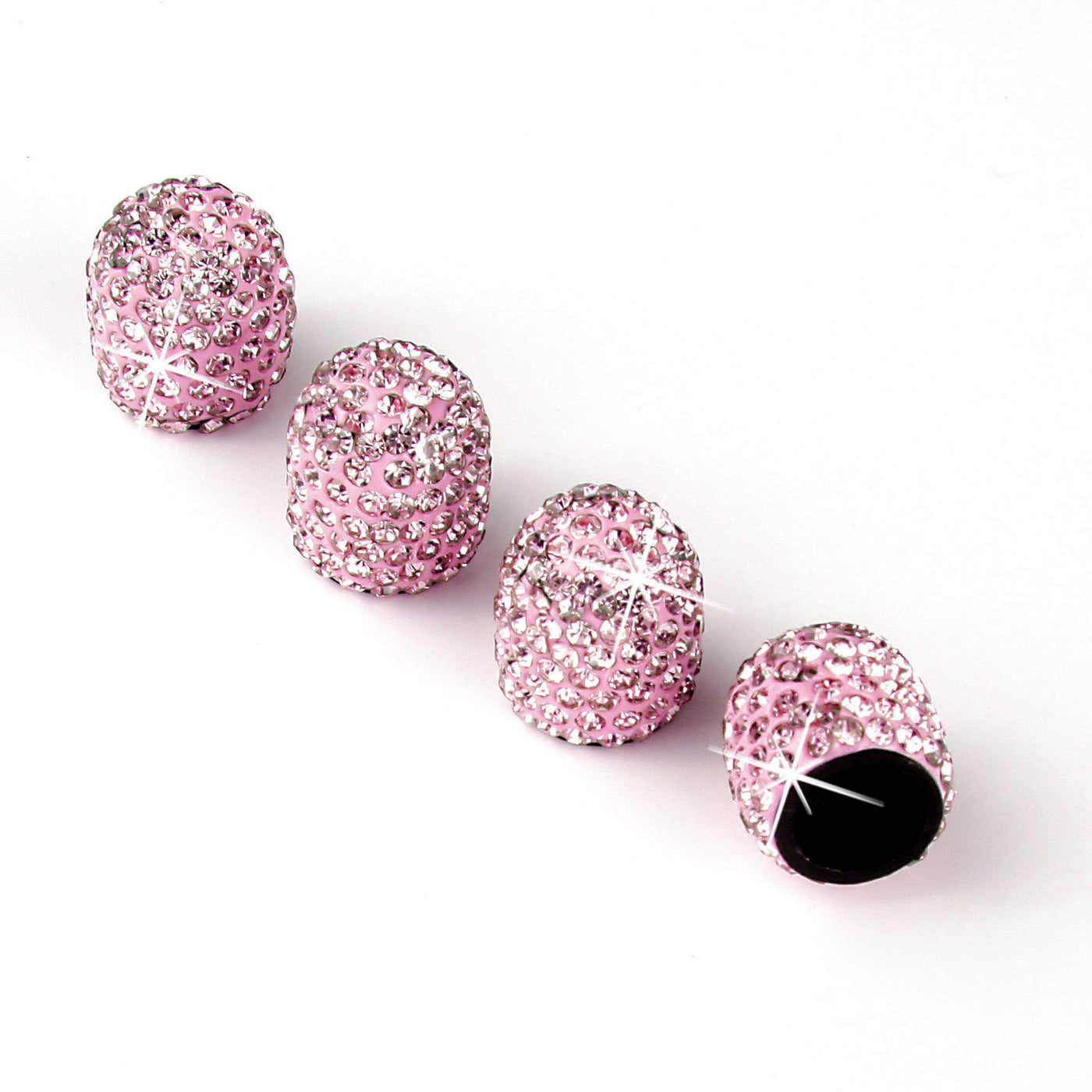 Justtop 4 Pack Handmade Crystal Rhinestone Car Tire Valve Stem Caps, Car Wheel Tire Valve, Attractive Dustproof Bling Car Accessories, Universal For Cars, Trucks And Motorcycles-Pink
