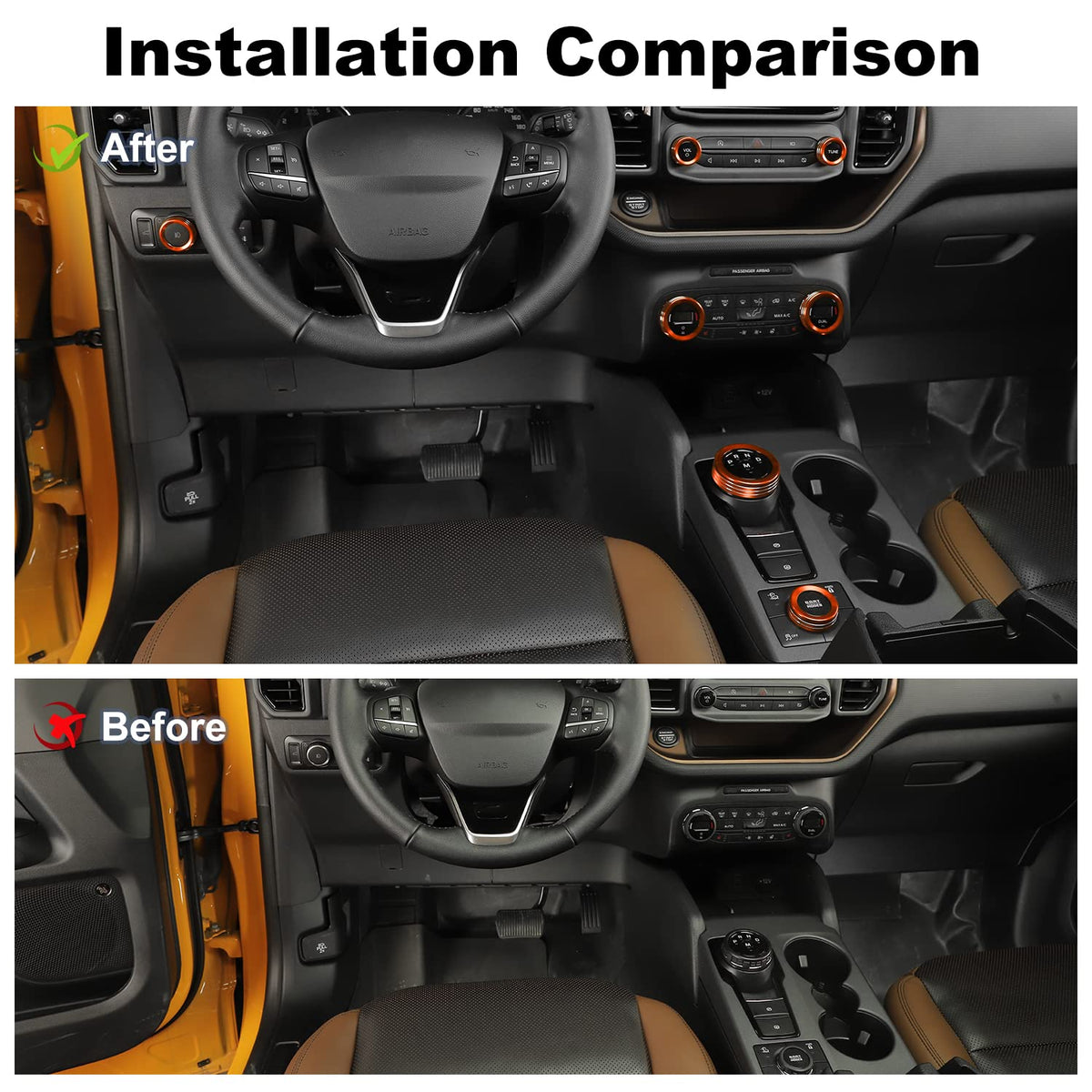 Model: Air Conditioner Headlight Switch Knob 4WD Wheel Drive Trailer Gear Switch Knob Cover for 2021-2022 Ford Bronco Sport Accessories Feature: -Material: Premium grade automotive Aluminum Alloy treatment, light-weight and durability, impact resistance and anti-corrosion, high and low temperature resistance. Never rust, fade or peel. Quite strong and stable. -Provides a high class, unique and fashion decor style to enhance the visual appearance of your car. It can cover existing scratches and prevent your door hinges from fingernails, key scratches and etc. Dress up your hinges and makes your car out of ordinary. Installtion Notes -1. Clean all positions with rubbing alcohol where will be covered in the shifter plate. (Very important); - 2. Make sure you heat both the accessories and the tape on the cover piece; - 3. After the alcohol is dry, remove the protective film from the Double-sided tape on the back of the product; - 4. Paste the accessories in the corresponding position and press it with your hand to make it more solid. After sales service - Our all products have 30 days of after-sale protection and 2 years services -If you have any suggestions or questions for our products, please Get in Touch with Us as soon as possible. Package Include: Headlights*1 Four-wheel Drive*1 Air Conditioning*2 Audio*2Gear Shift Switch Knob*1