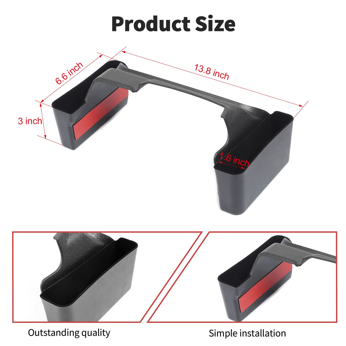 Q: Will the storage box stay in place during bumpy rides?A: Yes, the upgraded bar design connects the storage boxes on both sides, and it comes with high-quality automotive tape to ensure it remains securely in place, even on rough terrains.