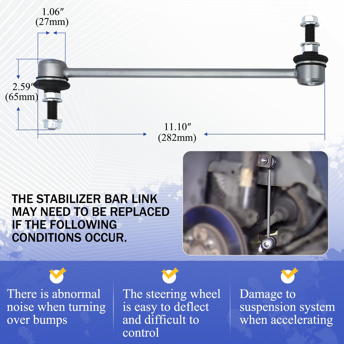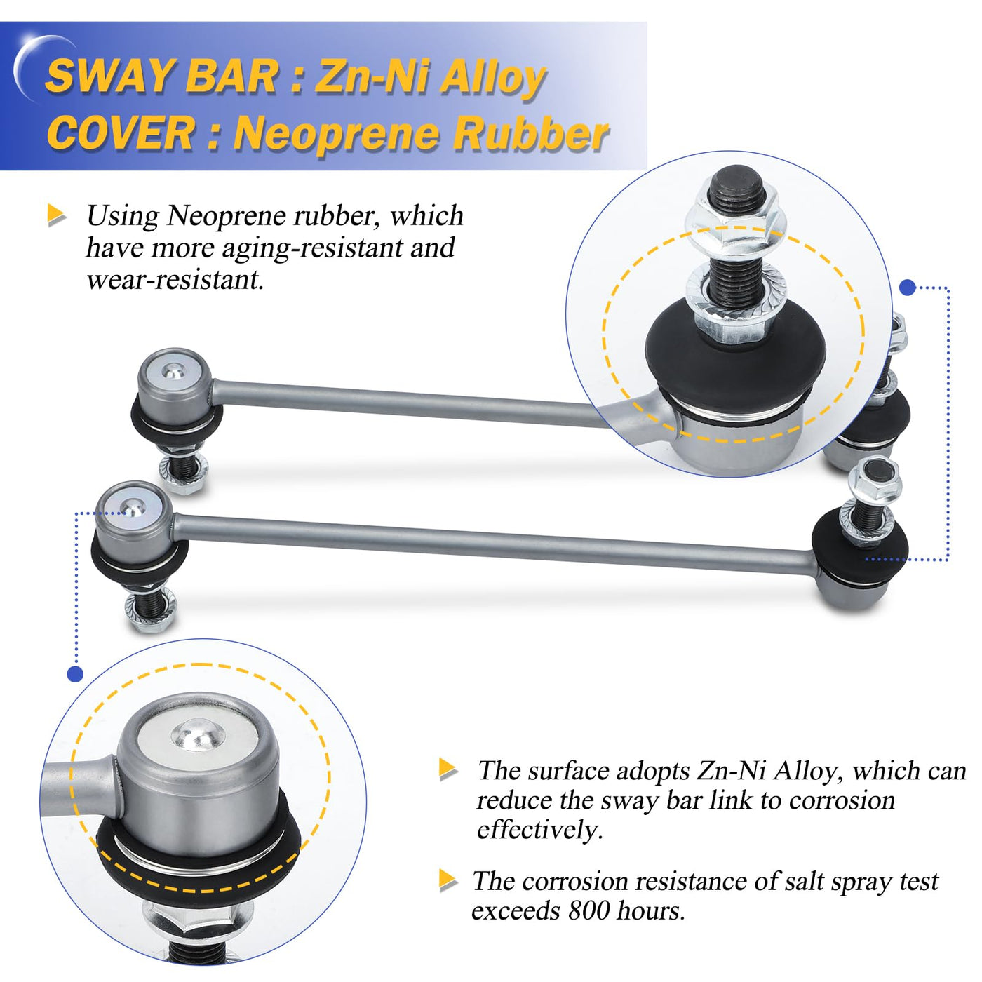 K750098 Zinc-Nickel Alloy Front Stabilizer Sway Bar Links For 2007-2019 Nissan Versa, 2014-2019 Nissan Versa Note, 2009-2014 Nis