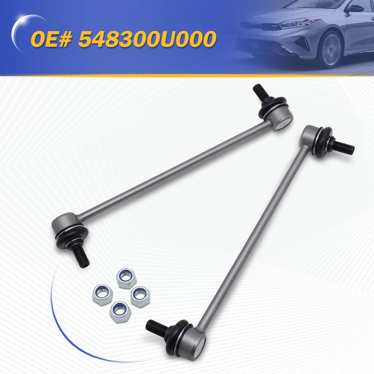 K750523 Zinc-Nickel Alloy Front Stabilizer Sway Bar Links For Hyundai Accent 12-17/Elantra 11-16/Veloster 12-17 Kia Forte 14-18/Forte Koup 14-16/Forte5 14-18/Rio 12-17/Soul 14-18 548300U000