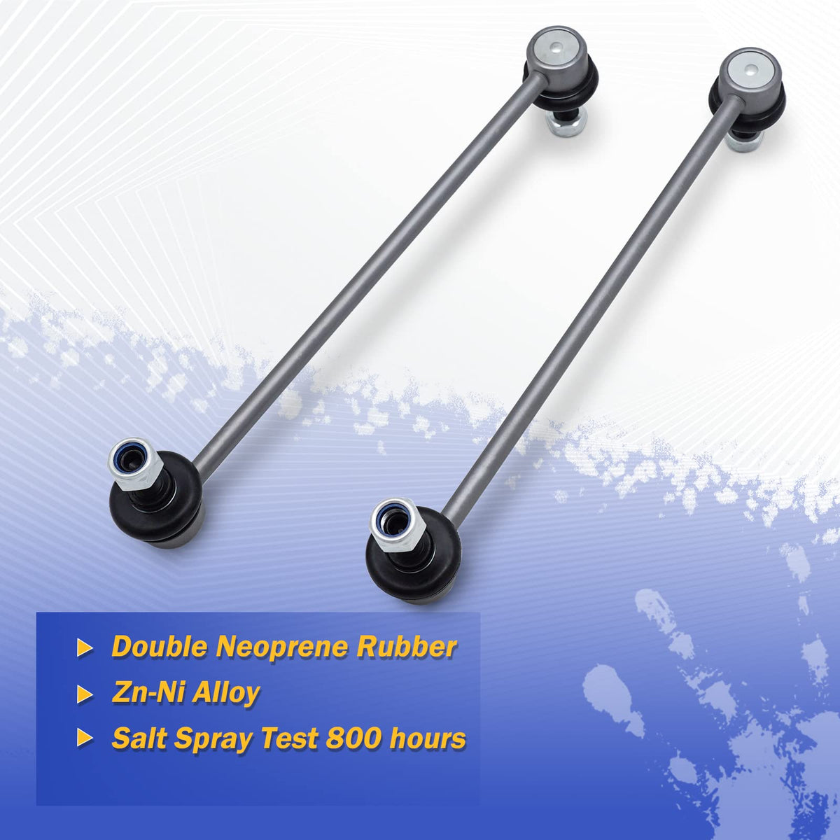 Q: How do I know if my sway bar links need replacement?A: Signs of worn sway bar links include clunking sounds during turns, a loose or misaligned steering wheel, poor handling, uneven tire wear, and visible damage in the suspension system. If you experience any of these issues, it may be time to replace your sway bar links for improved driving safety and performance.