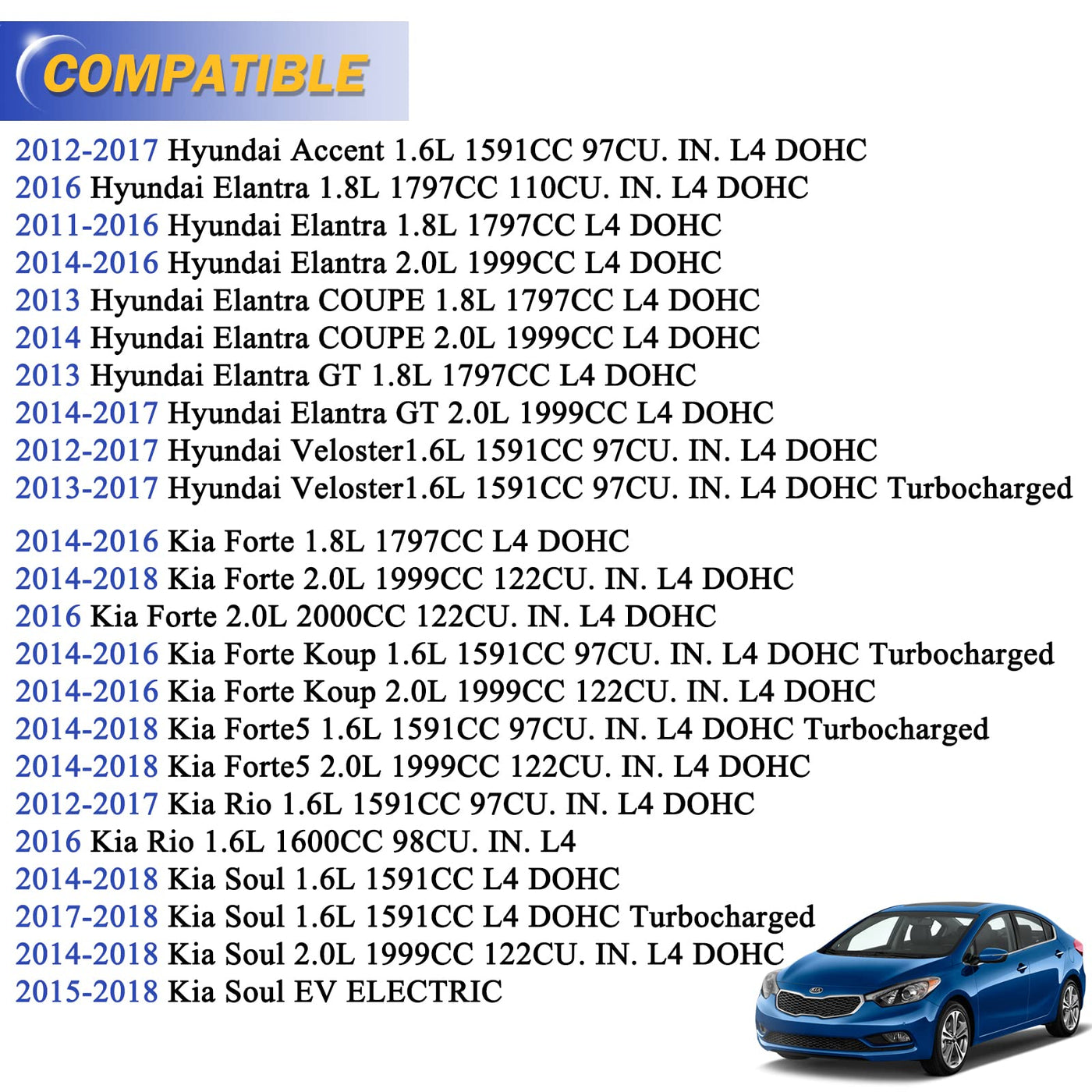 Q: What vehicles are compatible with the K750523 Zinc-Nickel Alloy Front Stabilizer Sway Bar Links?A: The K750523 Zinc-Nickel Alloy Front Stabilizer Sway Bar Links are compatible with various models, including the 2012-2017 Hyundai Accent, 2011-2016 Hyundai Elantra, 2012-2017 Hyundai Veloster, and multiple Kia models such as the 2014-2018 Kia Forte and 2014-2018 Kia Soul. It’s essential to check the specific engine type and year of your vehicle for a perfect fit.