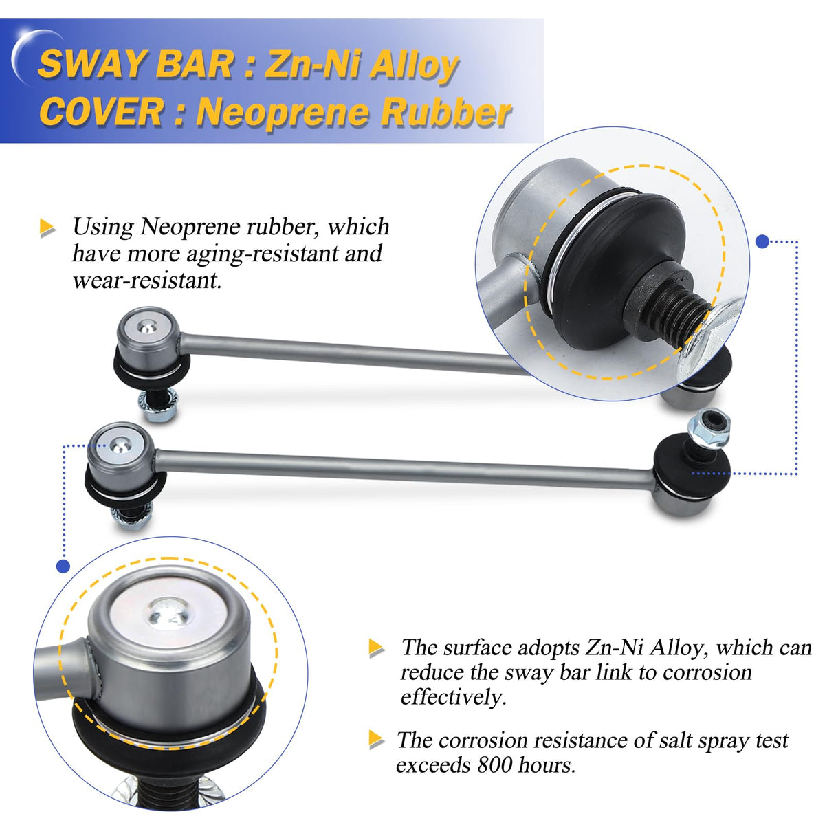 K80066 Zinc-Nickel Alloy Front Stabilizer Sway Bar Links For 2000-2011 Ford Focus Replaces # 5S4Z5K484Aa Ys4Z5K484