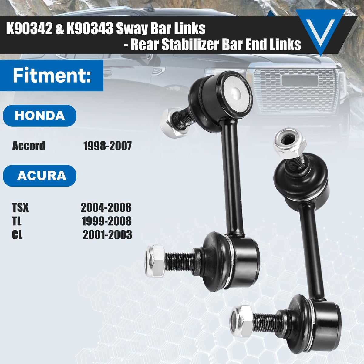 K90342&K90343 Sway Bar Links - Rear Stabilizer Bar End Links Compatible With Honda Accord 1998-2007 Acura Tsx 2004-2008 Tl 1999-