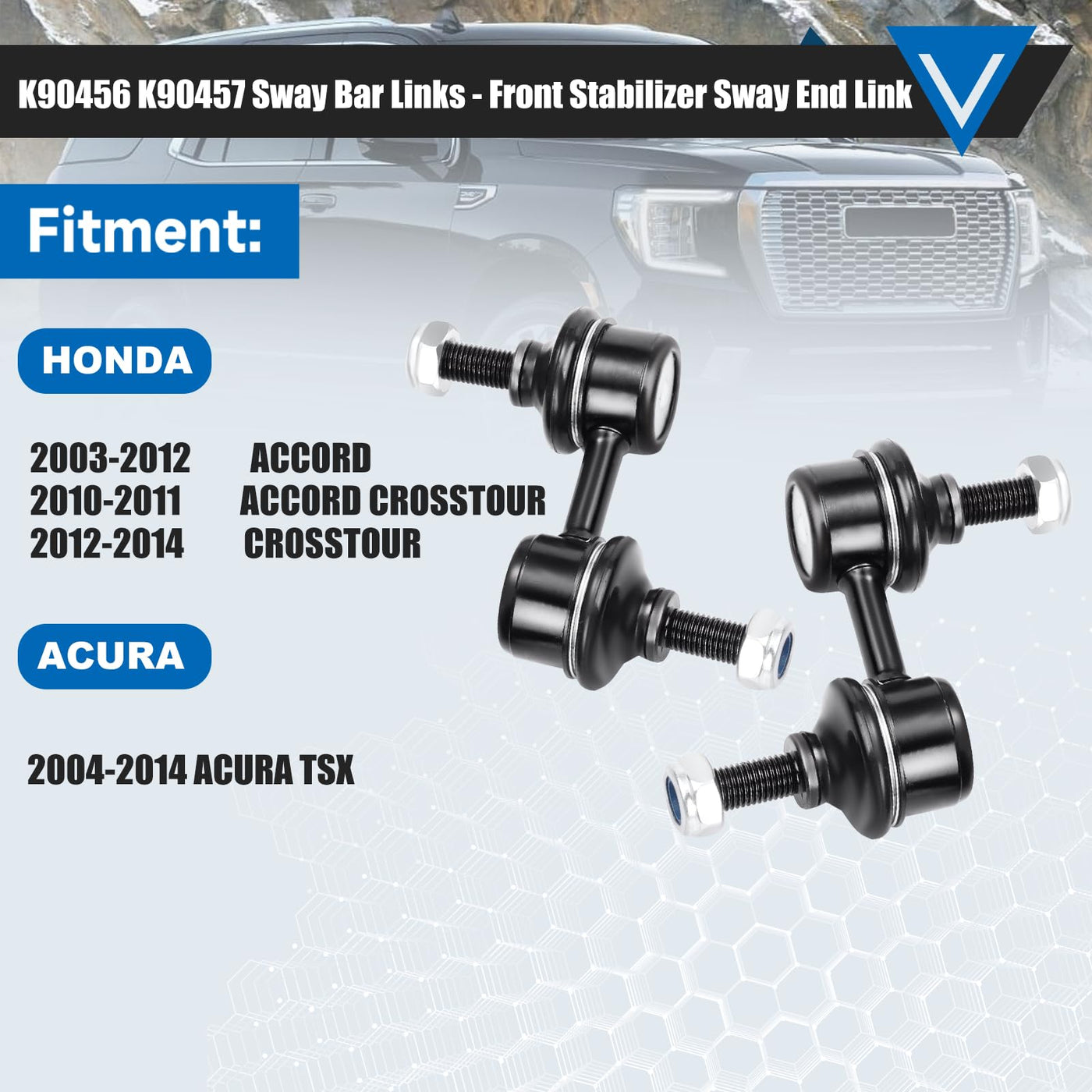 K90456 K90457 Sway Bar - Front Stabilizer Bar End Links Compatible With Honda Accord 2003-2012 Accord Crosstour 2010-2011 Crosst