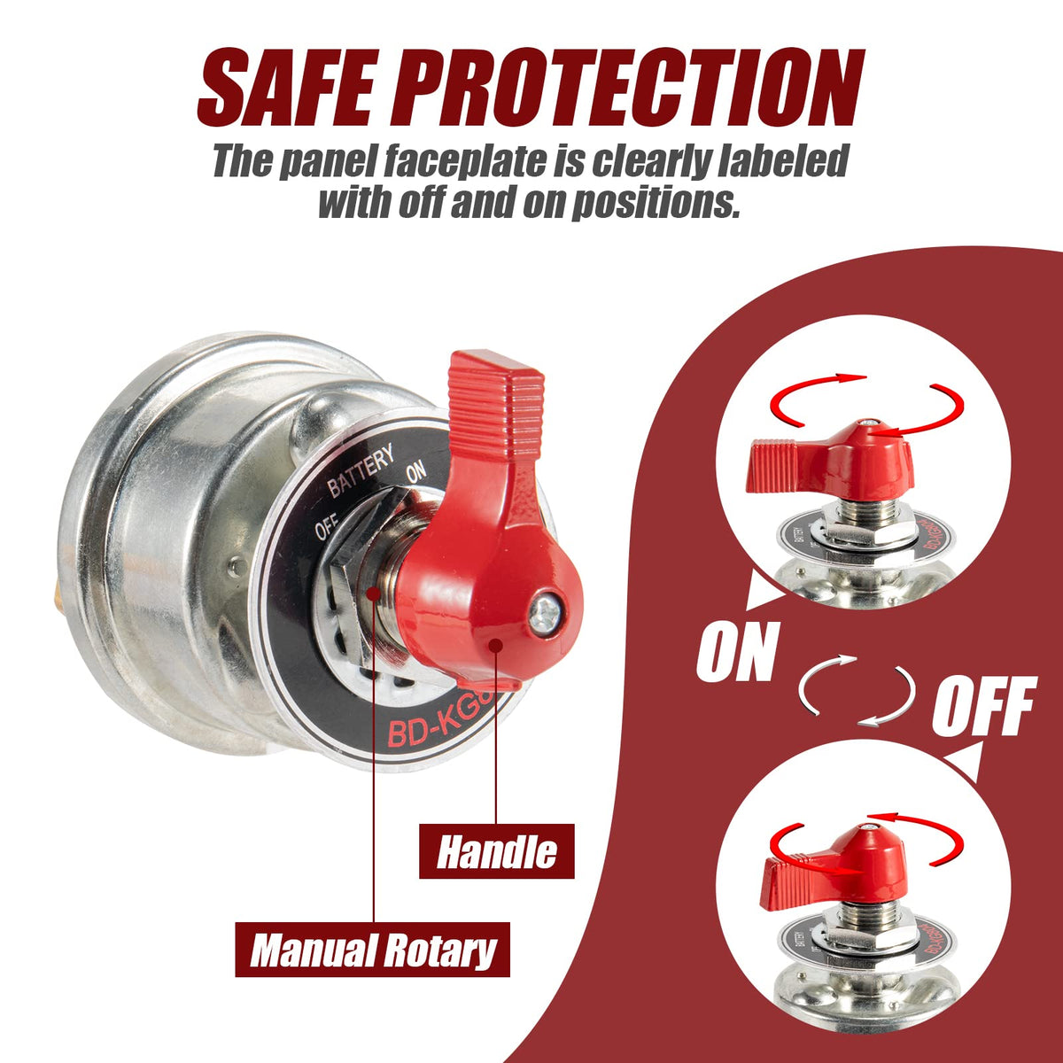 Kacola High Current Battery Disconnect Switch 300A, 12-24V Master Battery Power Cut Isolator Kill Switch With Face Plate For Car, Vehicle, Rv And Marine Boat, Prevent Battery Drain