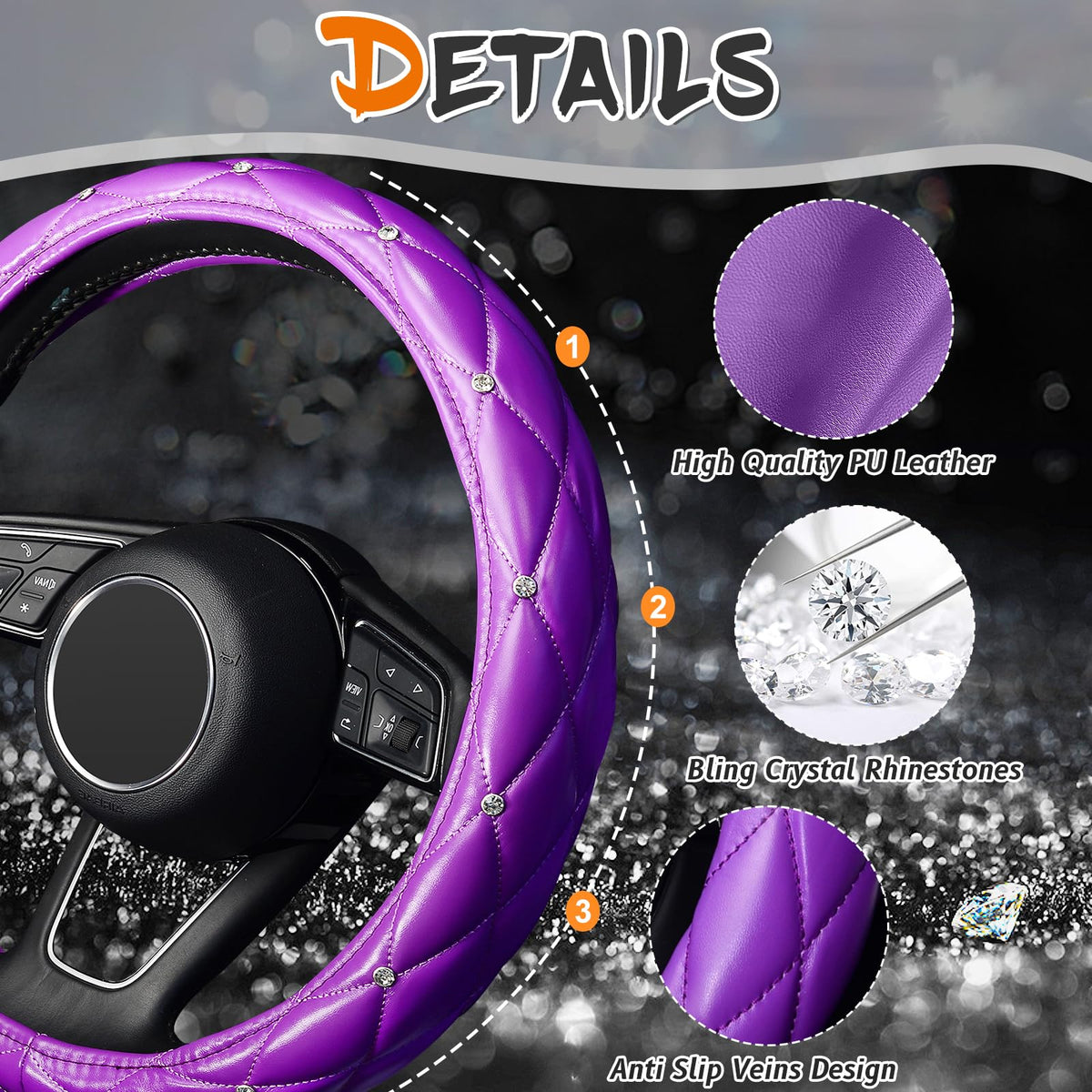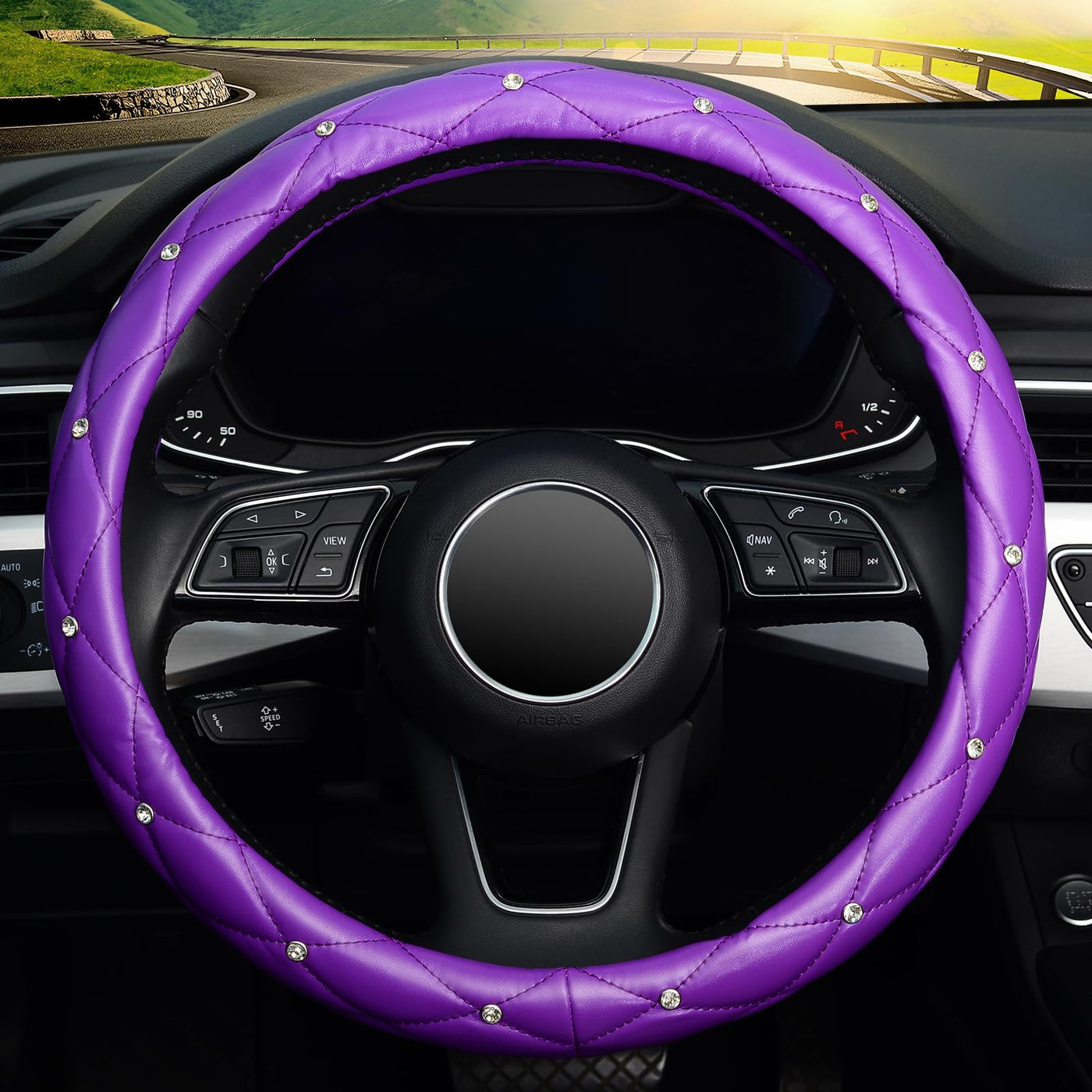 Kafeek 15 Inch Diamond Leather Steering Wheel Cover It Fits For Steering Wheels With Outside Diameter Of 14 1/2 To 15 Inch. Skidproof, Heat Resistant.Inside Skidproof Rubber Lining Ensures A Constant Reliable Grip. Comfortable Leather Design For Better Touch Feeling And Added Comfort.It Can Not Only Decorate Your Car Steering Wheel, Protect From Stains And Scratches But Also Hide Existing Wear And Keep Your Steering Wheel Looking New. This Premium Product Is An Excellent Gift Choice For Anyone Close To You On Example Their Birthday, Christmas Or Any Other Suitable Occasion. How To Install If It Is Difficult To Put It On At First Time,Because It Has Kind Of Hard Rubber Coating Inside,You Can Heat It Up A Little Under The Sun To Soften The Rubber Then Put It While Its Warm. Its Easier To Stretch It A Little. 1.Turn Off The Engine, Make Sure The Steering Wheel Keep Fixed. 2. Put The Steering Wheel Cover On The Top Of Steering Wheel, Pull Tight The Steering Wheel Cover From Top To About Half Both Side. 3. Turn Out The Edge Of The Rest Cover And Keep It Touching The Steering Wheel 'S Edge, Then Keep Pulling Tight The Steering Wheel Cover From Side To Bottom. 4. Fix The Bottom Of Steering Wheel Cover, Then Rotate And Adjust The Wheel Cover To The Best Situation.Package Includes 1Pcs Steering Wheel Cover. If You Have Any Dissatisfaction Or Problems With The Product,Contact Us.Our After-Sales Team Will Provide You With The Best Customer Service. Need More Steering Wheel Covers? Just Click Into Our Kafeek Brand Or Search For Kafeek Steering Wheel Cover.