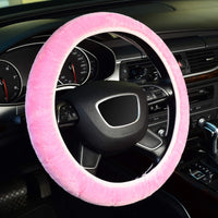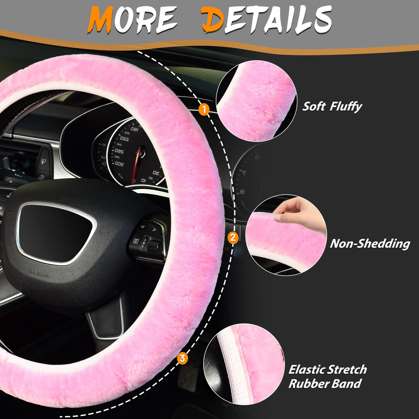 Kafeek Pink Elastic Fuzzy Steering Wheel Cover,Microfiber Plush Steering Wheel Cover For Woman Girl,Winter Warm, Universal 15 In