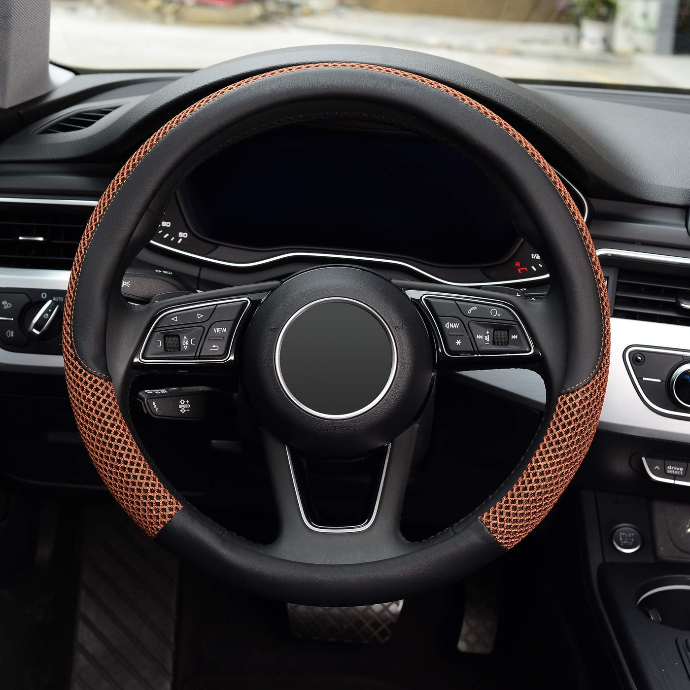 KAFEEK 15 Inch middle size leather steering wheel cover It fits for steering wheels with outside diameter of 14 1/2 to 15 inch.Skidproof, heat resistant.Inside skidproof rubber lining ensures a constant reliable grip. Breathable design for better cooling and added comfort.It can not only decorate your car steering wheel, protect from stains and scratches but also hide existing wear and keep your steering wheel looking new. This premium product is an excellent gift choice for anyone close to you on example their birthday, Christmas or any other suitable occasion.