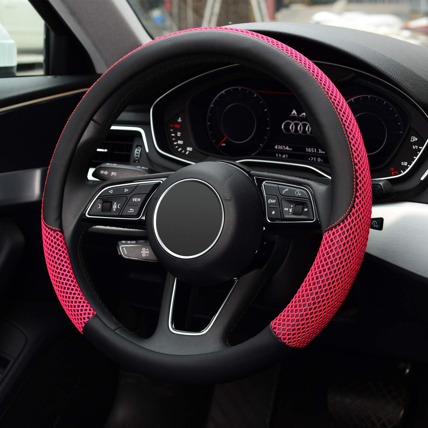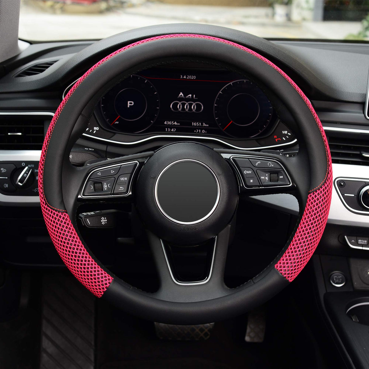 KAFEEK 15 Inch middle size leather steering wheel cover It fits for steering wheels with outside diameter of 14 1/2 to 15 inch.Skidproof, heat resistant.Inside skidproof rubber lining ensures a constant reliable grip. Breathable design for better cooling and added comfort.It can not only decorate your car steering wheel, protect from stains and scratches but also hide existing wear and keep your steering wheel looking new. This premium product is an excellent gift choice for anyone close to you on example their birthday, Christmas or any other suitable occasion.