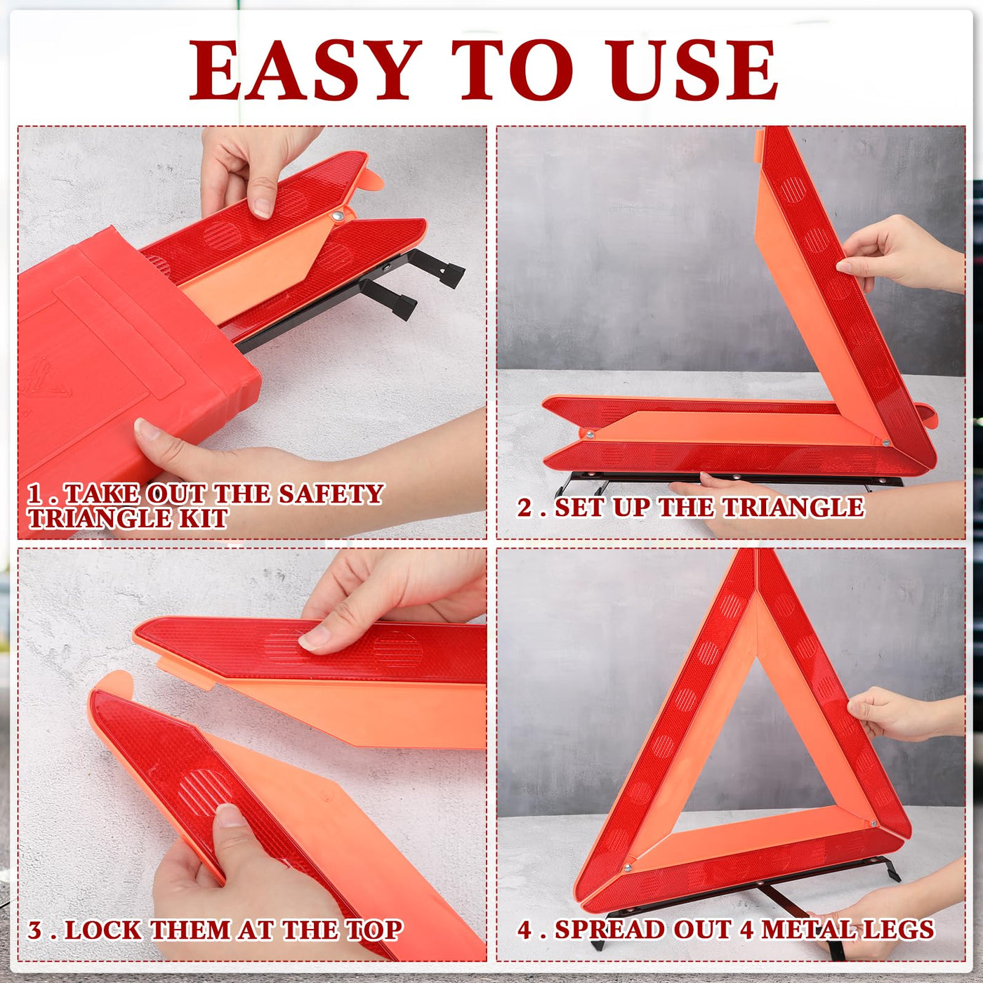Q: How many warning triangles are included in the package?A: The package includes 24 safety triangles, providing ample coverage for multiple emergency situations. This allows you to set up several triangles around your vehicle to effectively alert other drivers.