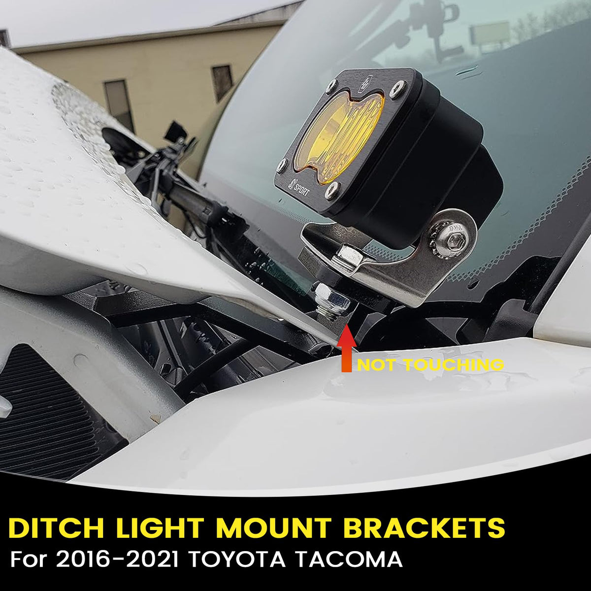 ?Spect? Ditch Hood Light Brackets Compatible With 2016-2017 Toyota Tacoma Designed To Ride At Night Or Even On The Road Behind To Improve Safety.When The Light Is Mounted On The Vehicle, It Does Not Affect The Opening Or Closing Of The Hood.Easy To Install, Basic Hand Tool Installation Time: Less Than 1 Hour (Simple).